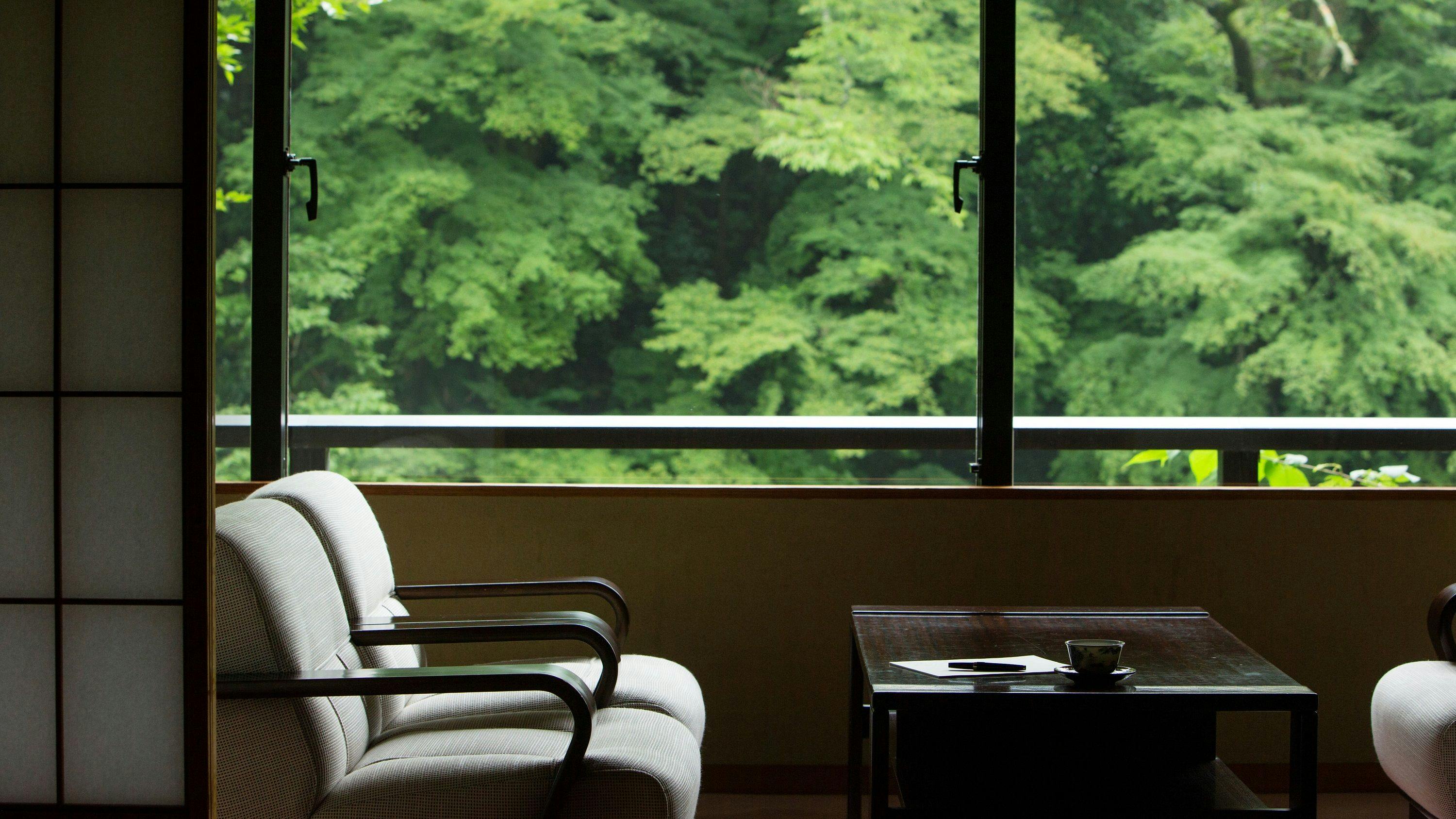 ○各お部屋からは鶴仙渓が眺められ、やすらぎのひとときをお過ごしいただけます