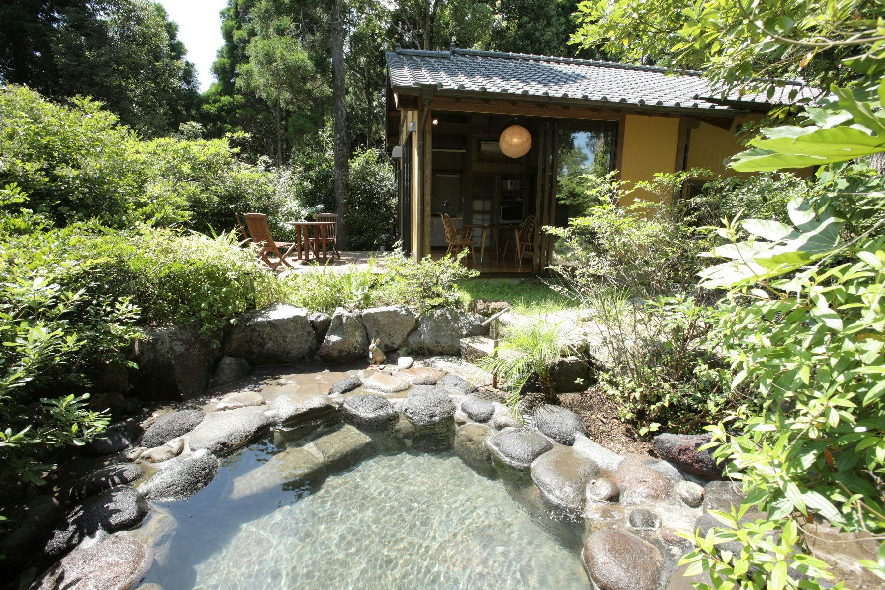 ファミリーや女子旅にもおすすめ 全棟離れの露天風呂付き 里山に佇む極上の空間 16棟のうち13棟には1年中利用できる温泉水プライベートプールが備わっています。