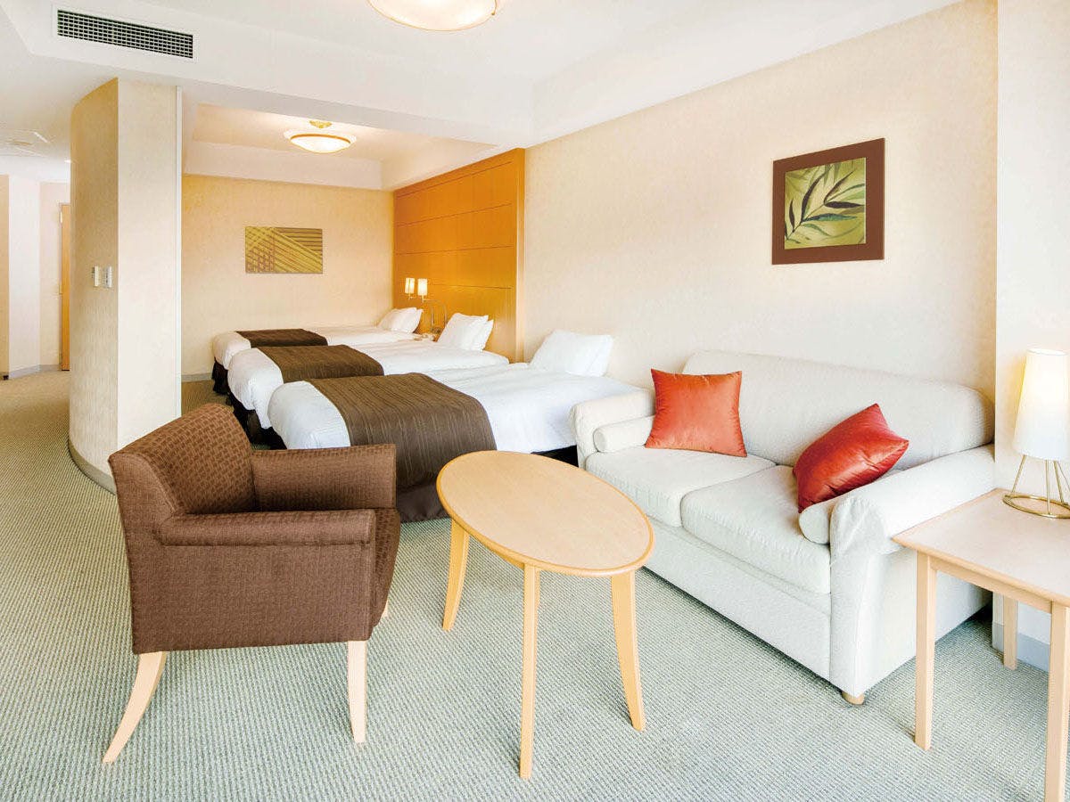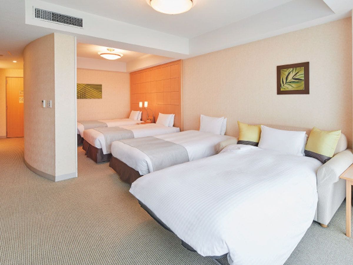 ※13階以上の高層階にあるカジュアル5窓のある洗い場付きバスルームと広々としたリビングのあるお部屋■客室面積 56m2 ■定員 5名様 ※4~5名様でご利用の際は簡易ベッドのご用意。