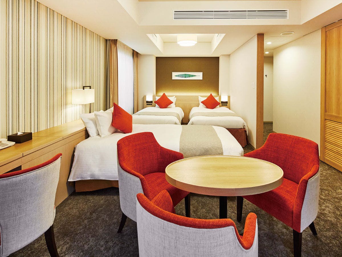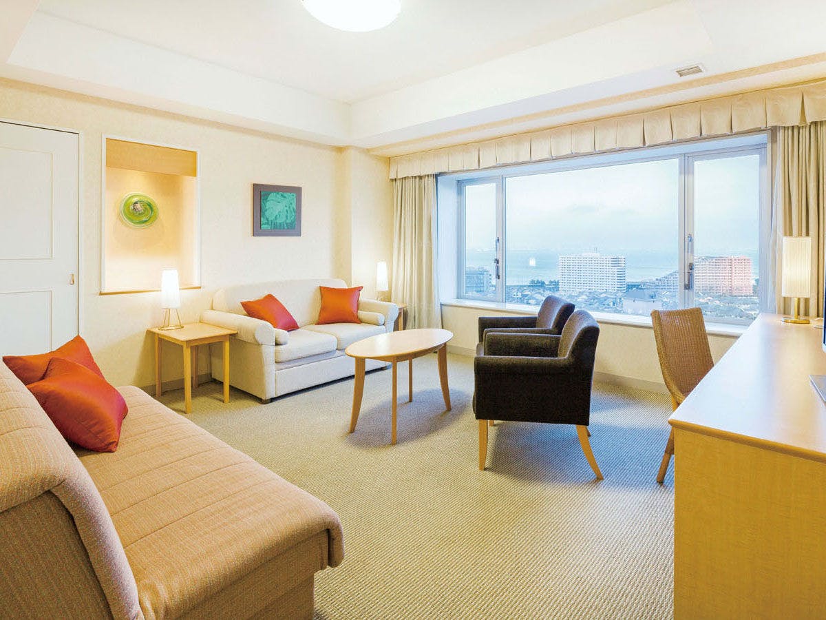 13階以上の高層階に位置し、広さ56平米とゆったりした客室は、全室バルコニー付で明るく開放感溢れるリラックス空間。