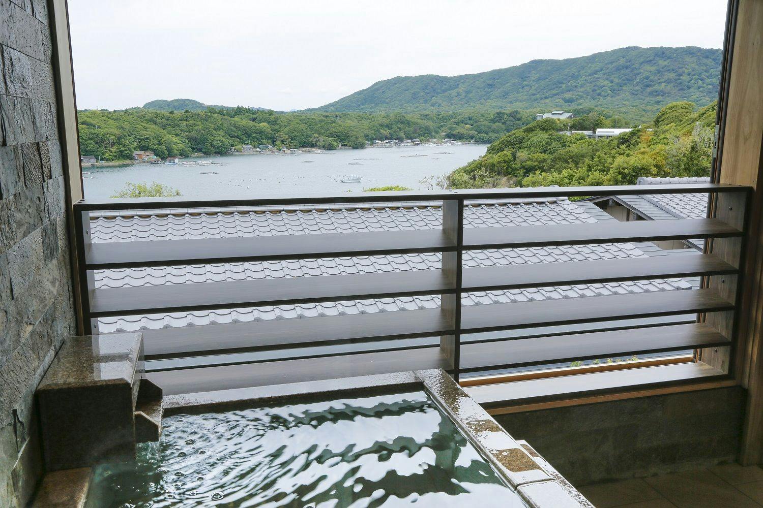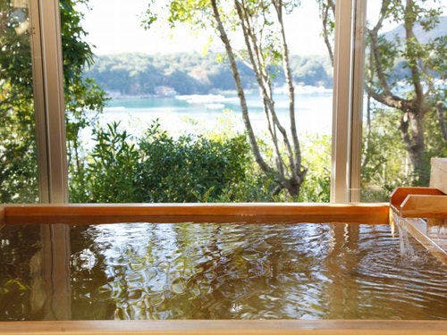 テラスに張り出した露天風呂では、湯船に浸かりながら英虞湾と一体となるかのような眺望体験をお楽しみください。