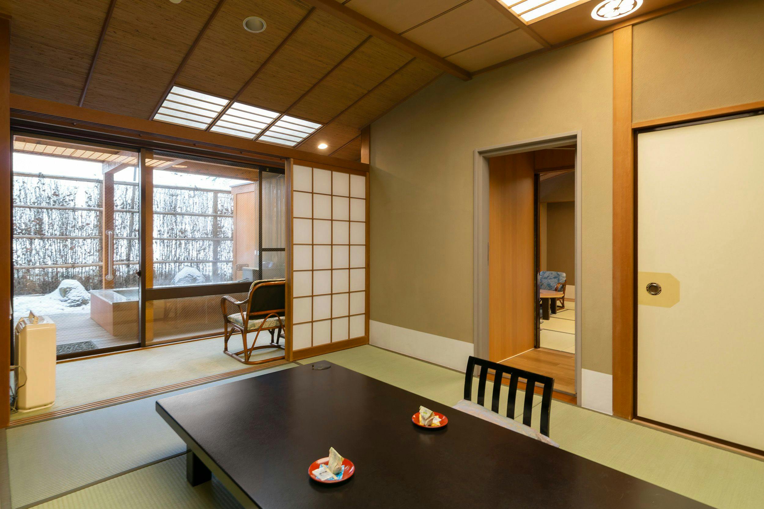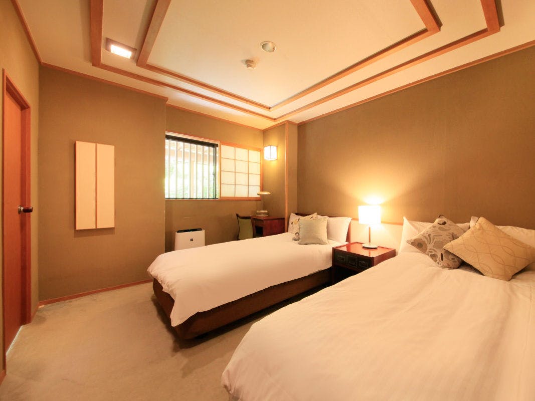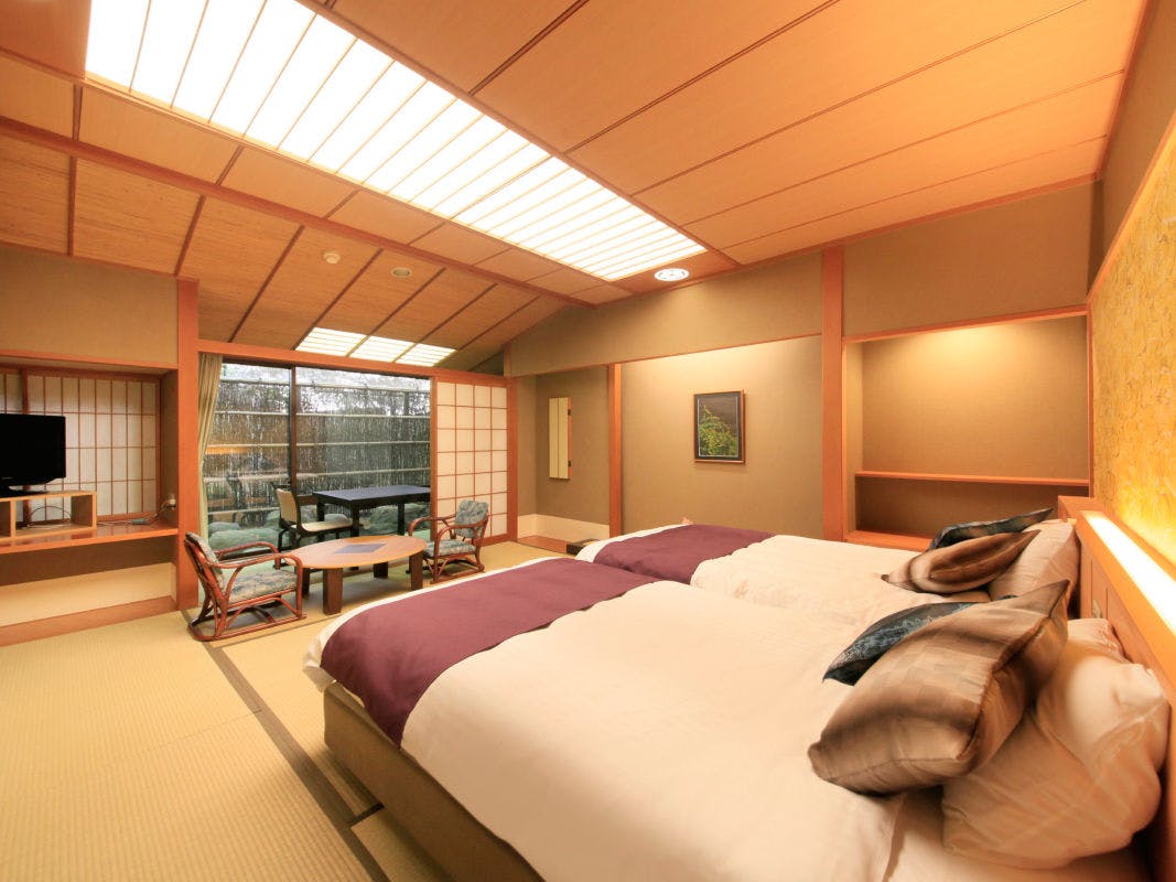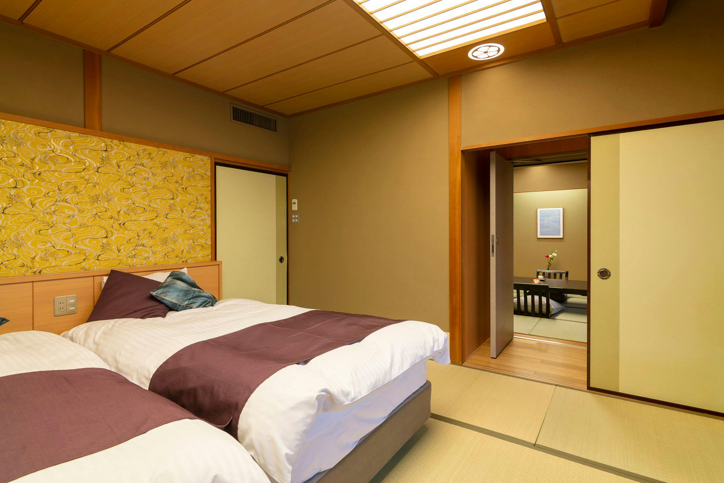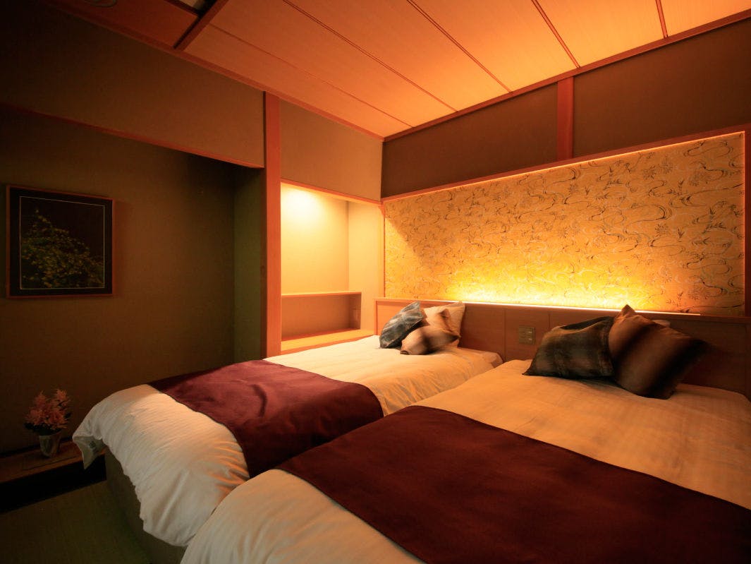 露天風呂付10畳和室と、和室にツインベッドをご用意したツインルームのコネクティングとなります。