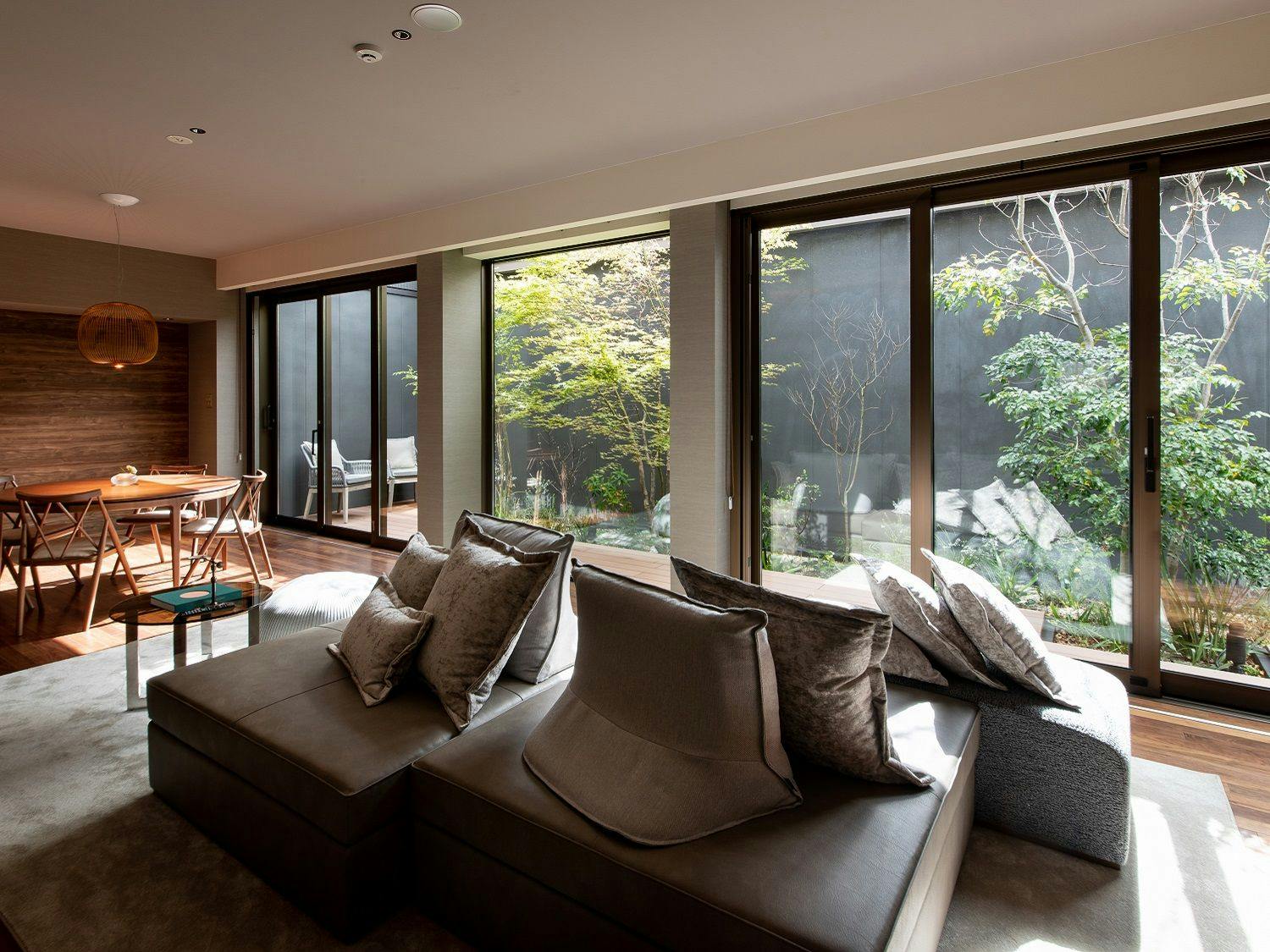 昼は木漏れ日を感じ、夜は木々の合間からのぞく「木の間の月」を感じていただけます。
