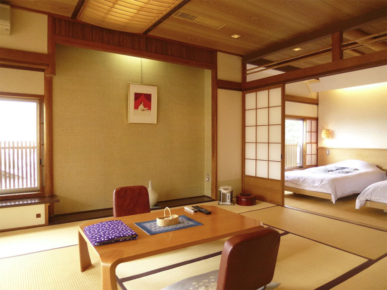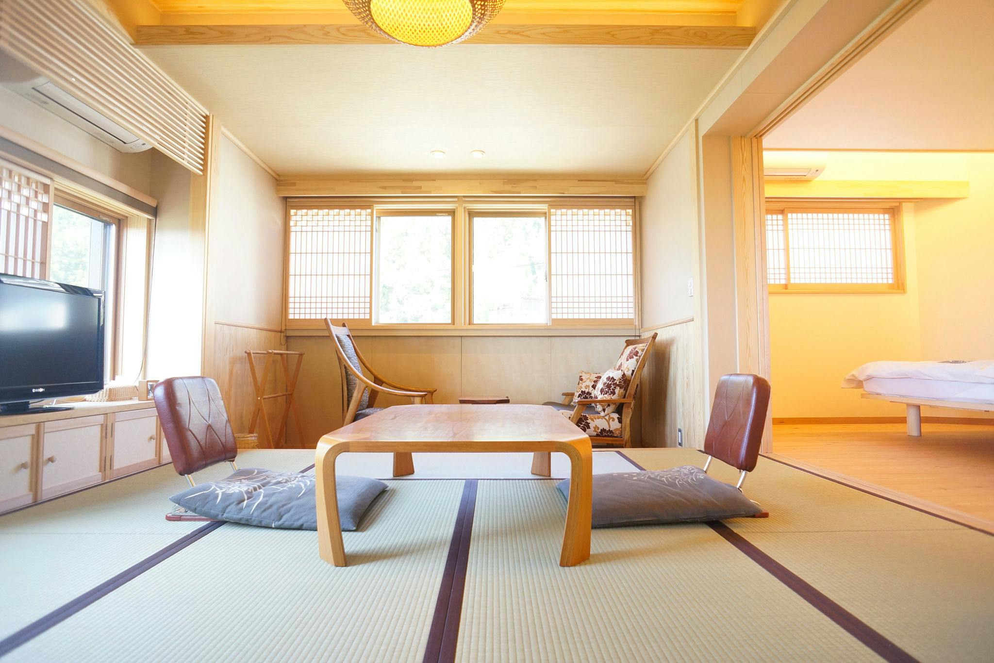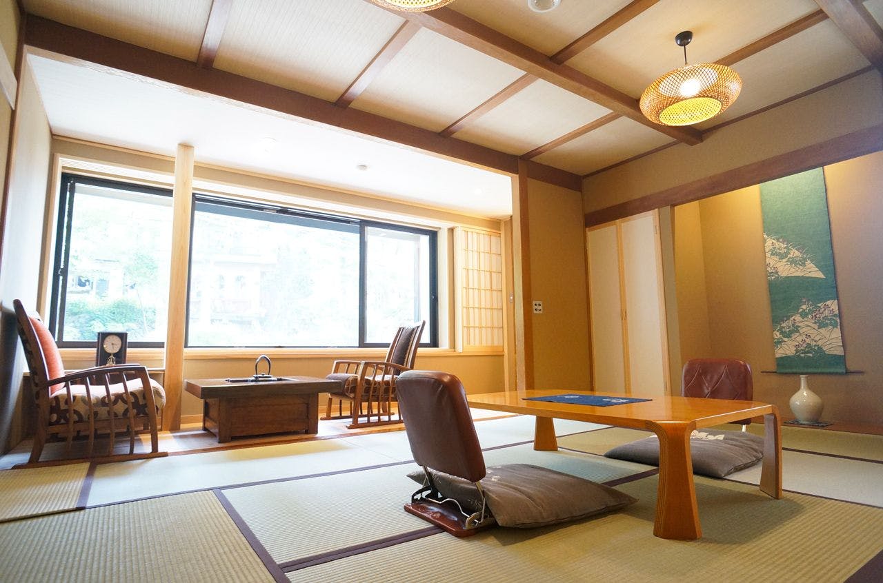 「住吉屋らしさ」を継承する雰囲気を残しつつ居住性を向上させた客室。