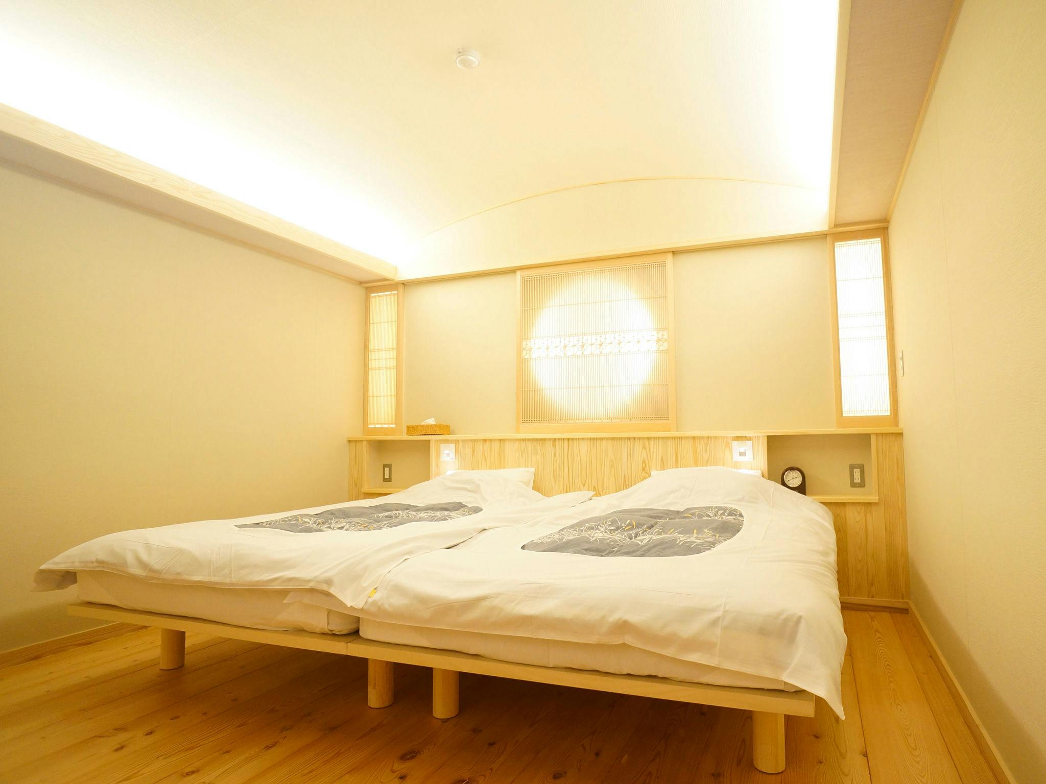 幅120センチのゆったり幅広ベッドを2台しつらえております。(3名様、4名様でのご利用時には布団を追加使用させて頂きます。)