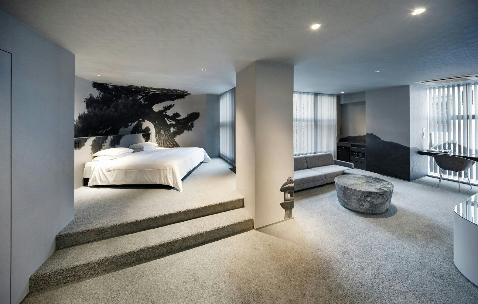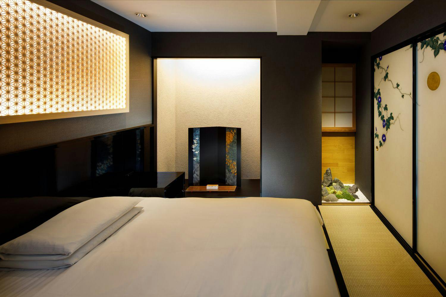 「畳の茶室」をテーマにしたこの部屋は、既存の畳の概念を覆す設えで、世界の「和」を感じられる空間。