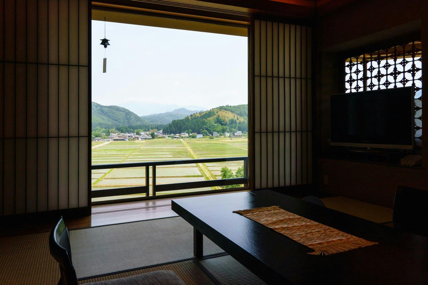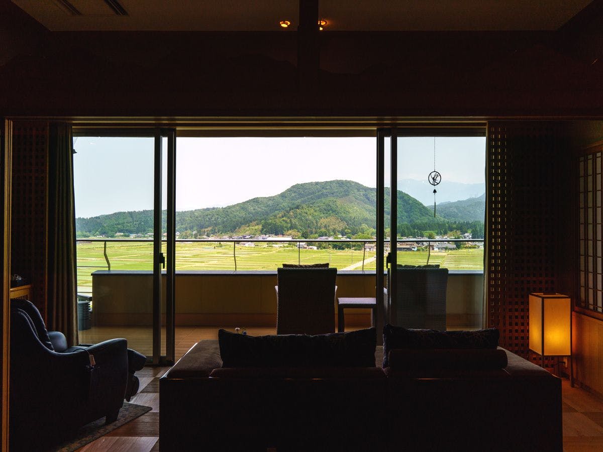 越後平野に広がる田園風景を眺めながら、それぞれ趣の異なる全20室のスイートルーム別邸 越の里。