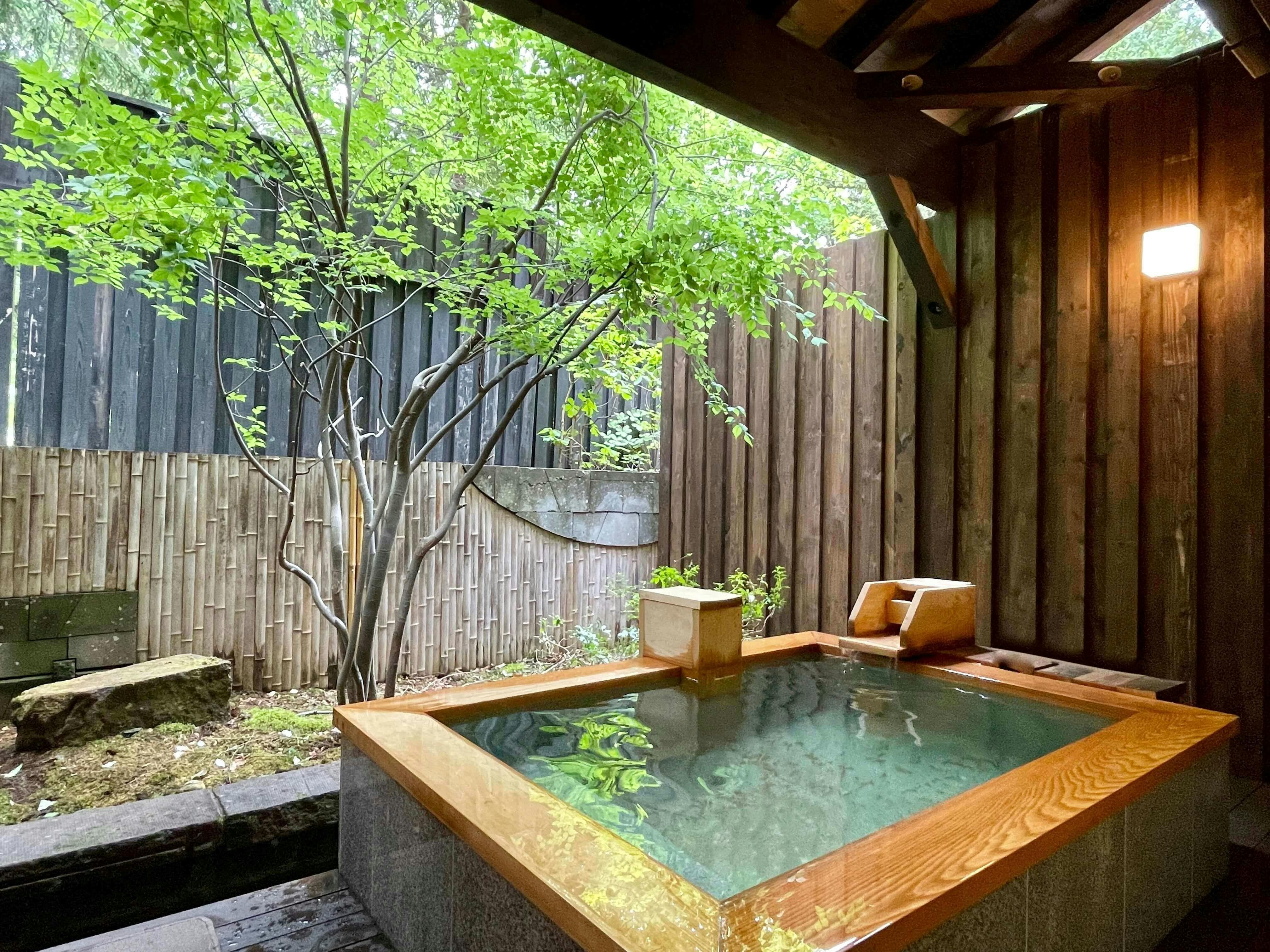 僅か14室のプライベートな空間。全室に源泉を引き込んだ檜造りの内湯で湯量豊富、良質な温泉をいつでもお楽しみいただけます。