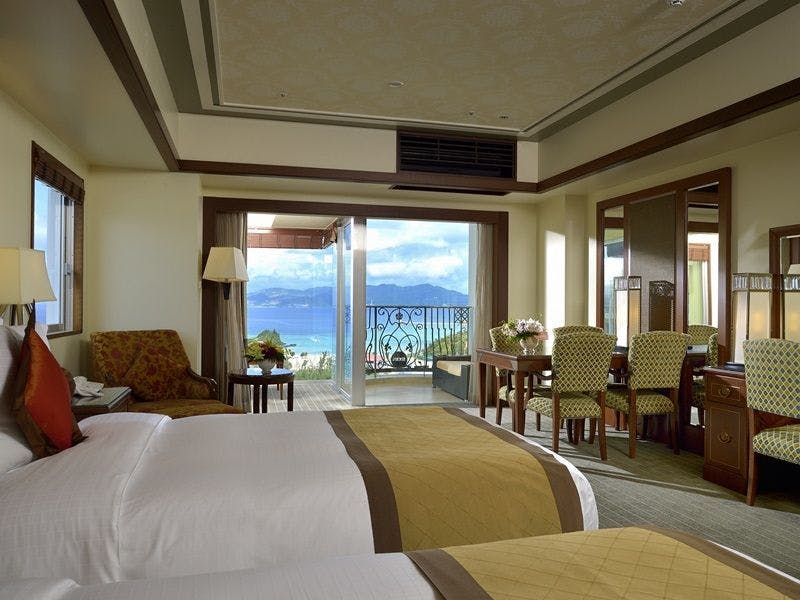 高層階から眺める七色の東シナ海を見つめながら、広々とした客室に流れる時間にゆっくりと身をまかせ、あなただけの空間をお楽しみください。