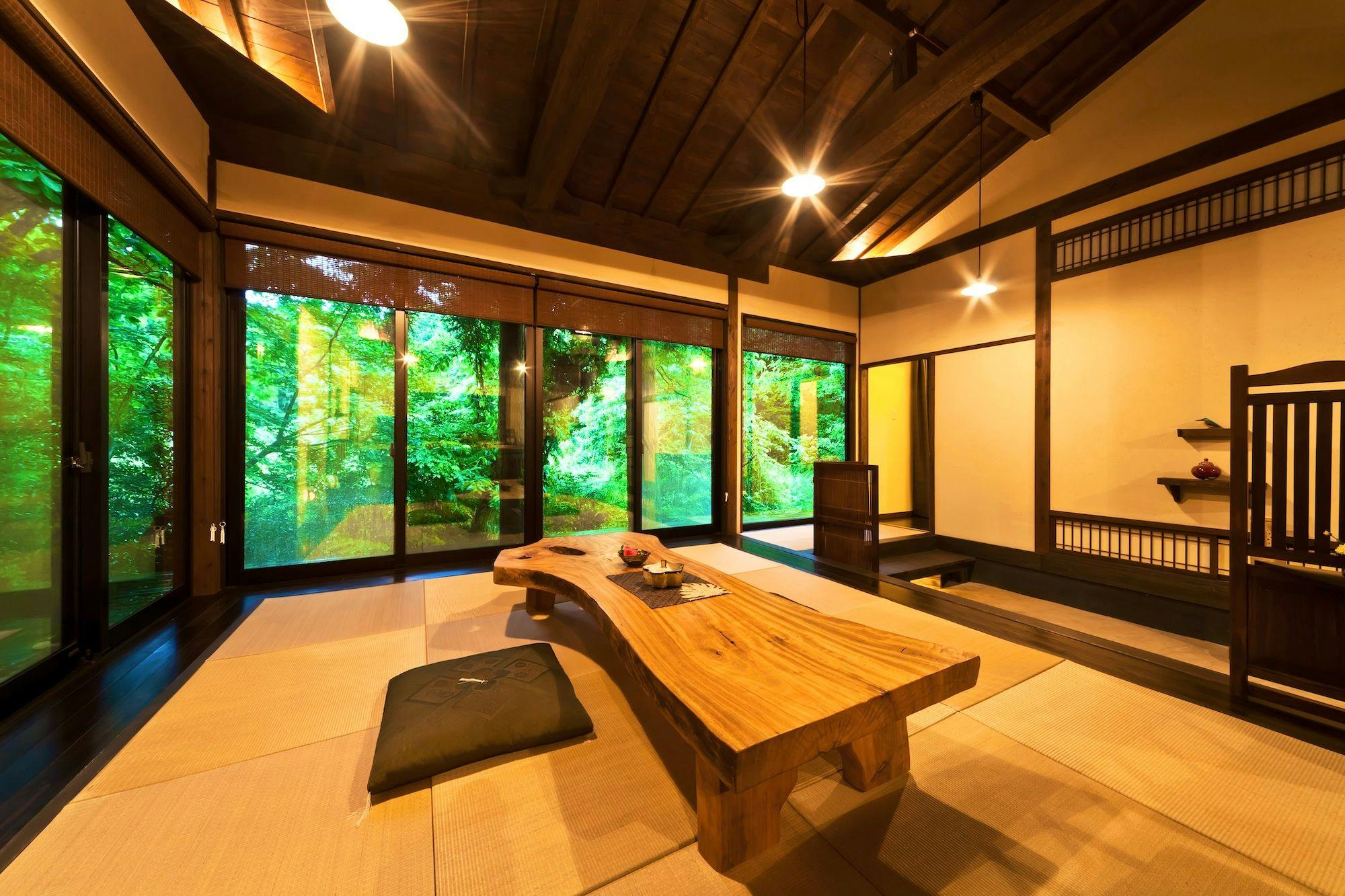 室内にはリビング、和室、寝室(ツインベッド)、半露天風呂岩盤浴があり、ゆっくり流れる時間をお楽しみいただけます。