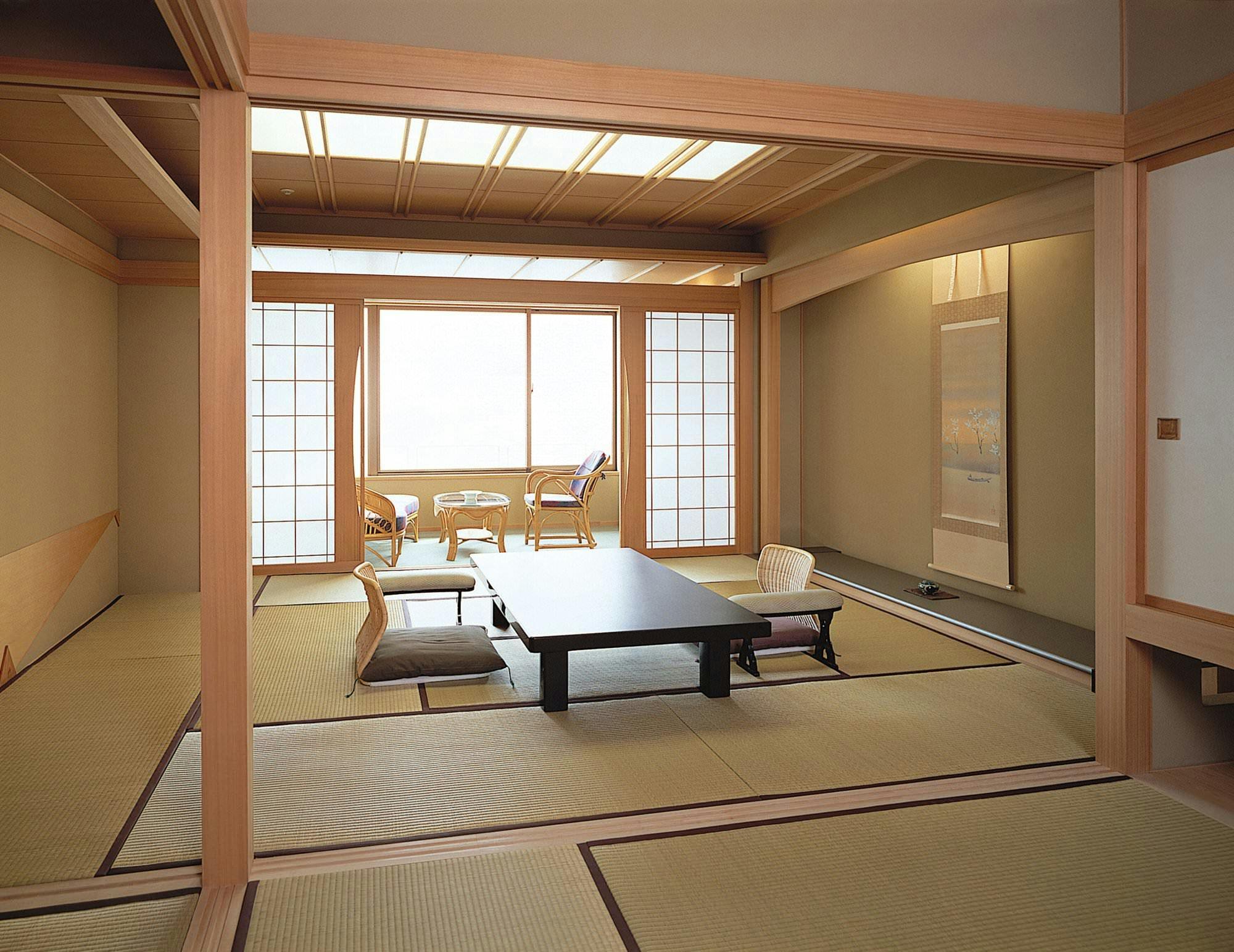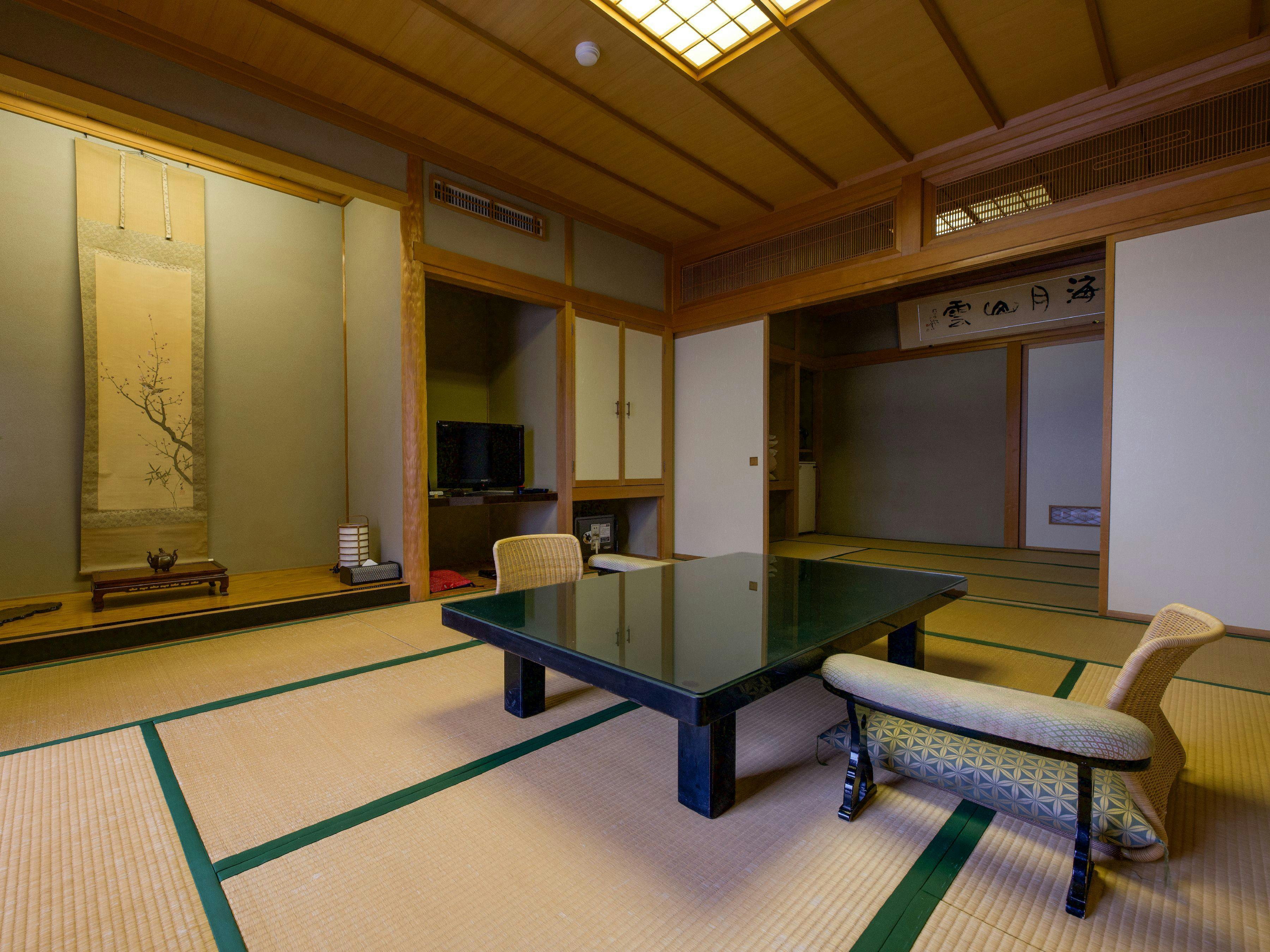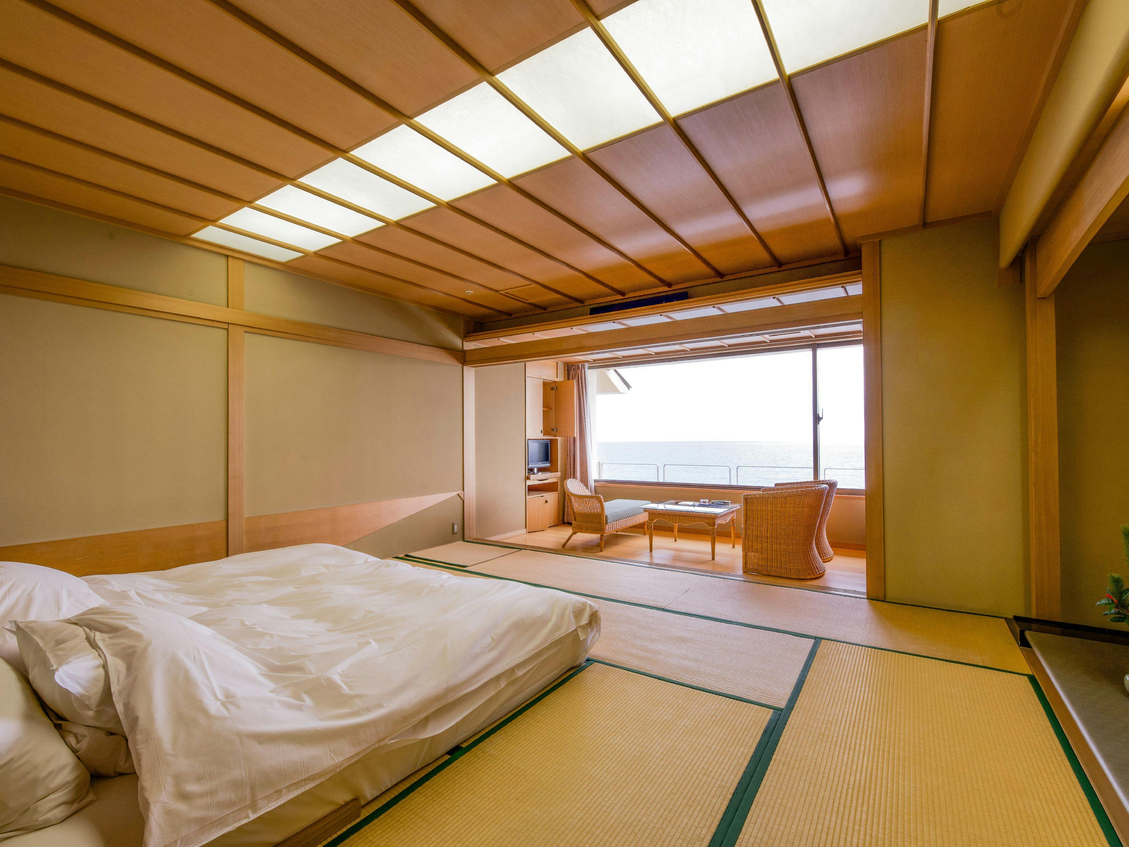 二間続きのゆったりとした客室。お部屋からは津軽海峡・下北半島を望む絶景。