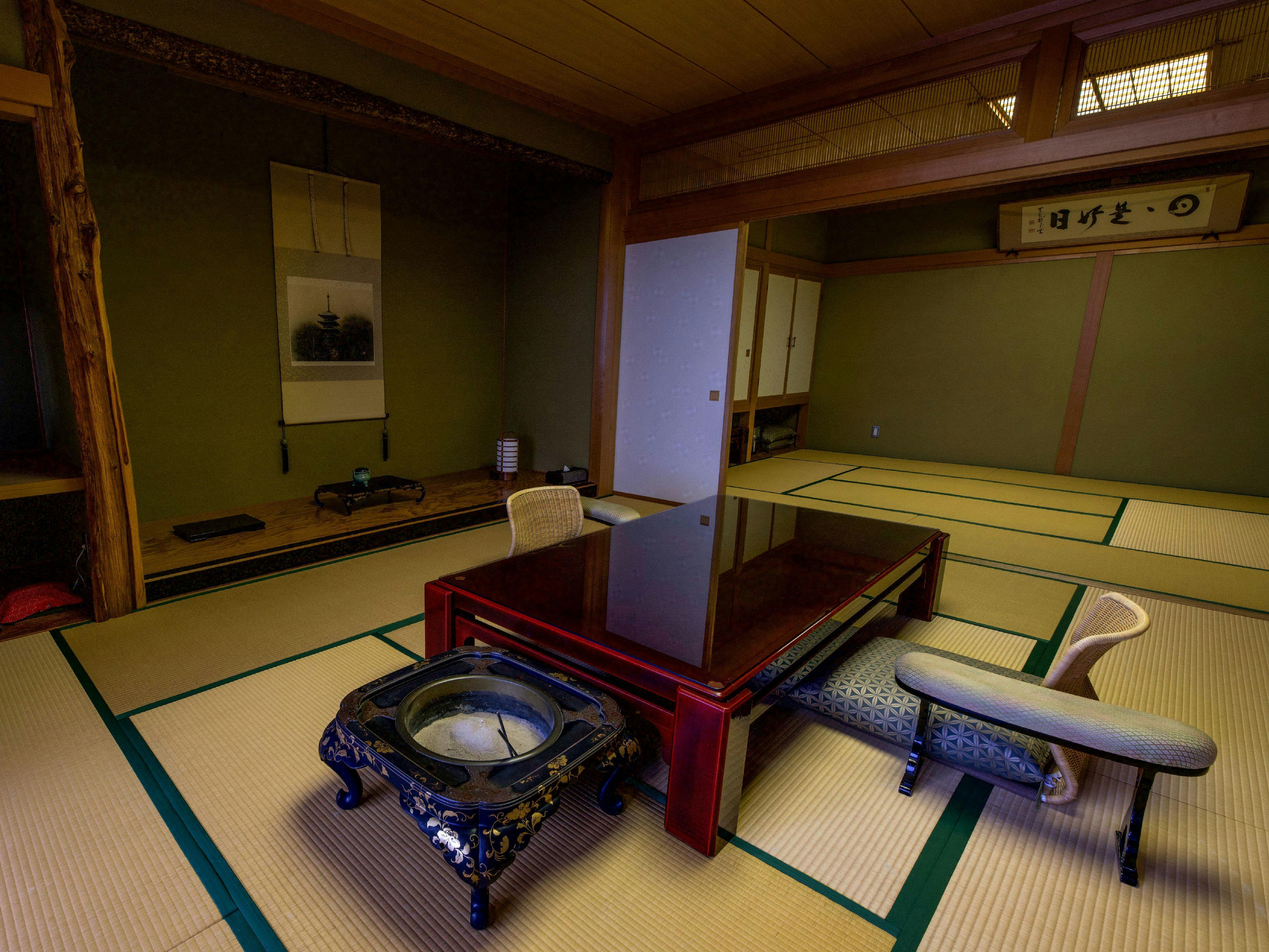 昭和天皇がお泊りになられた大部屋を再現した、重厚な造りのお部屋です。