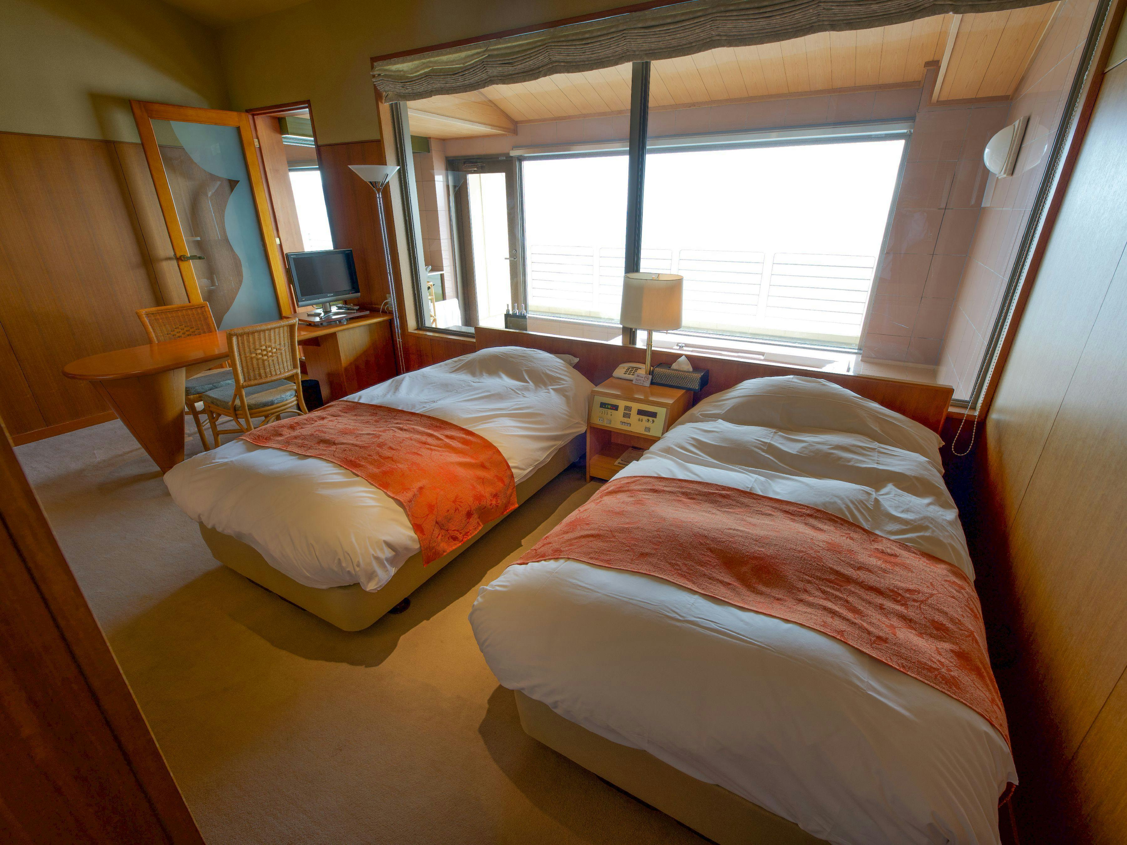 12.5畳一間のスタンダード客室。お部屋からは津軽海峡・下北半島を望む絶景。