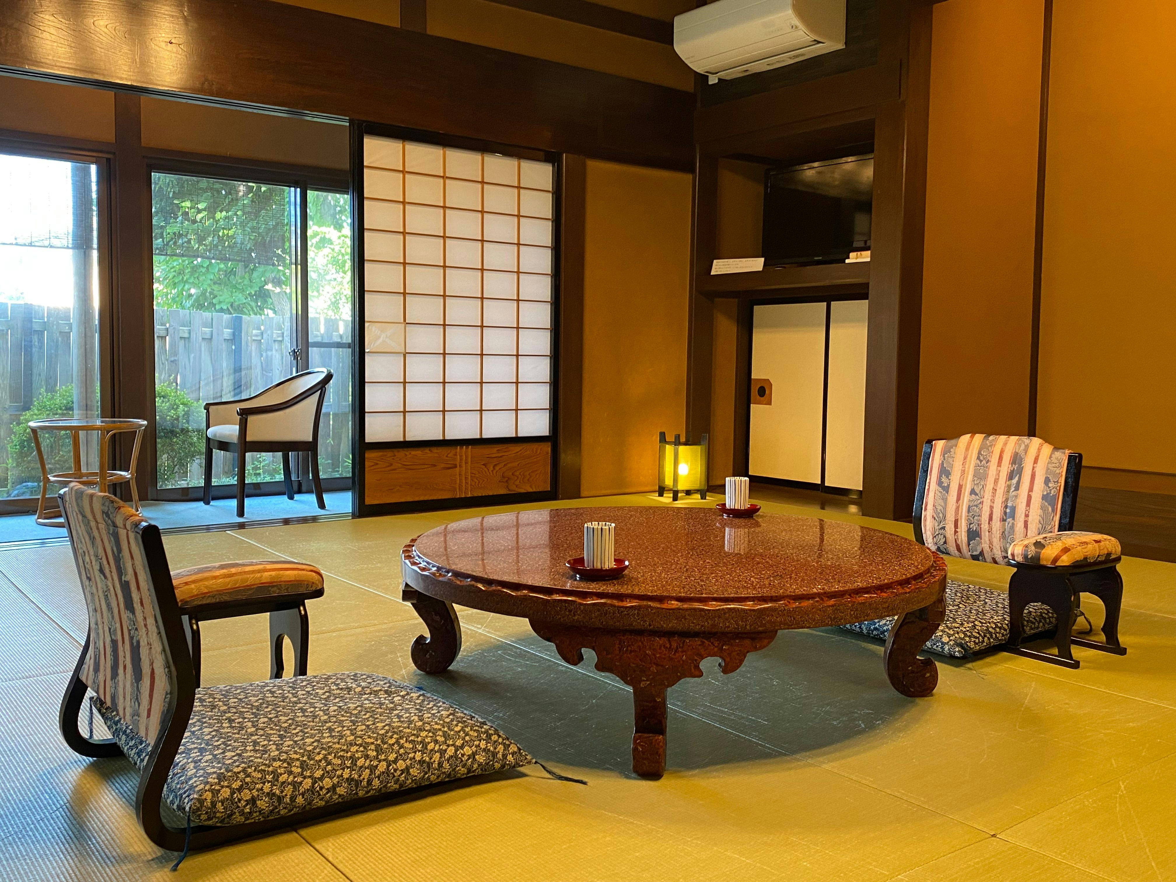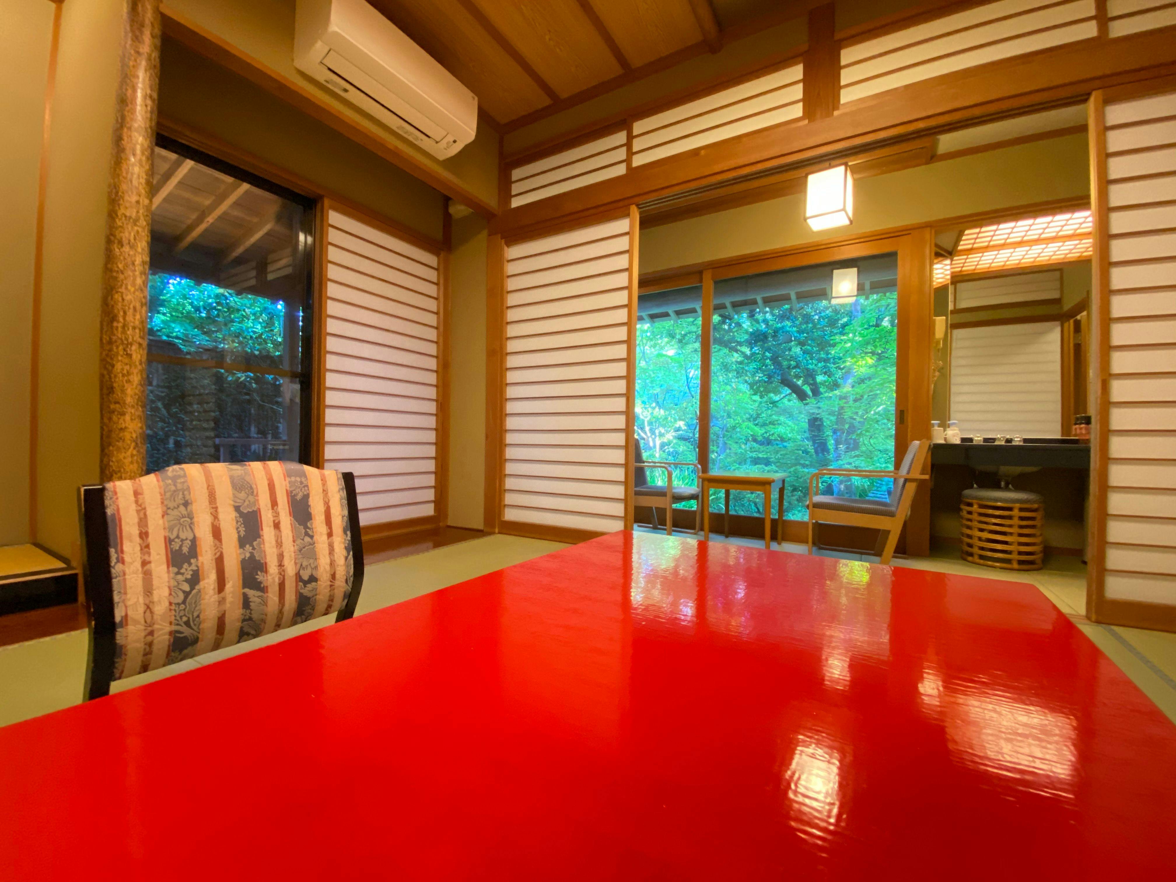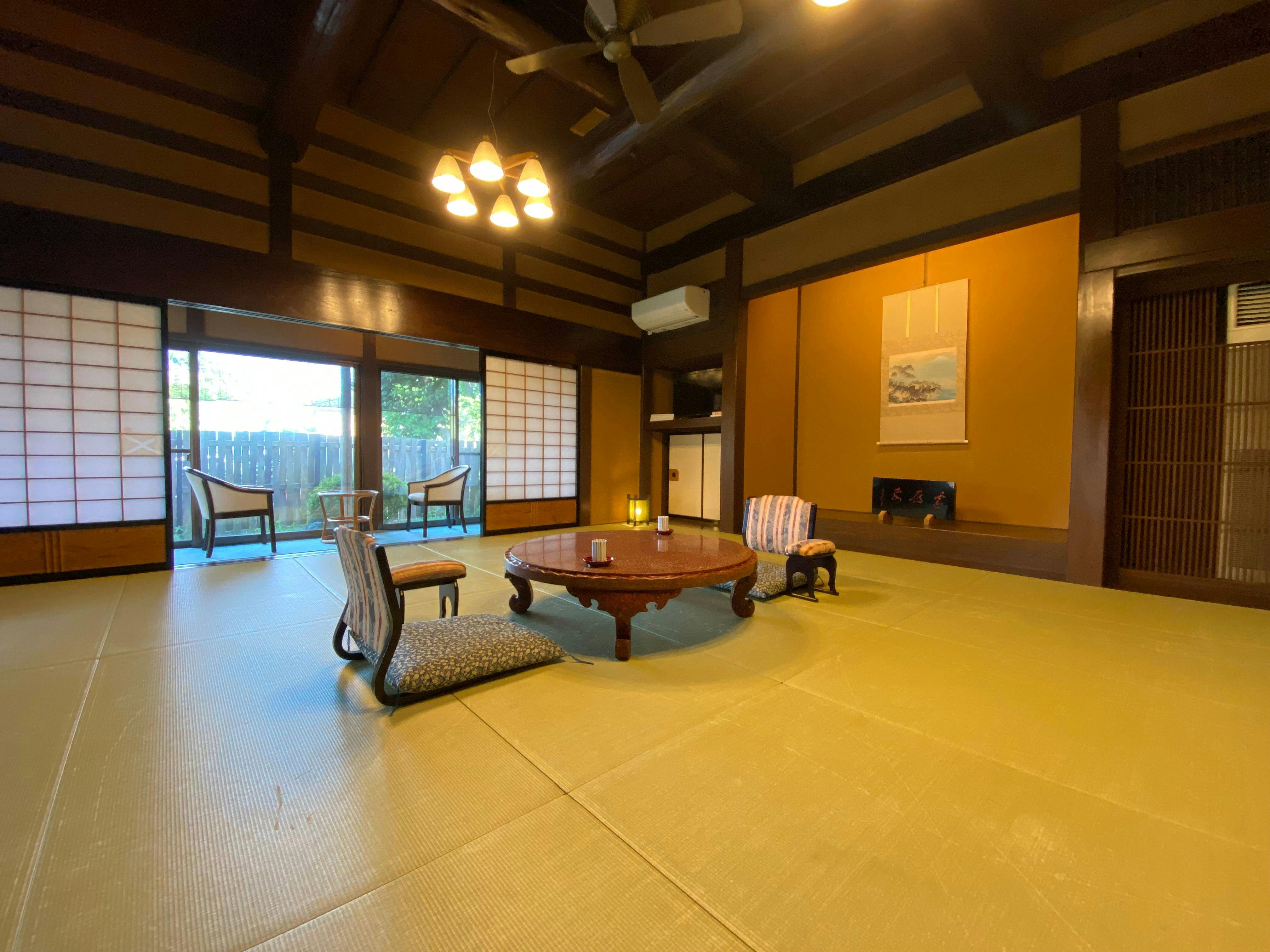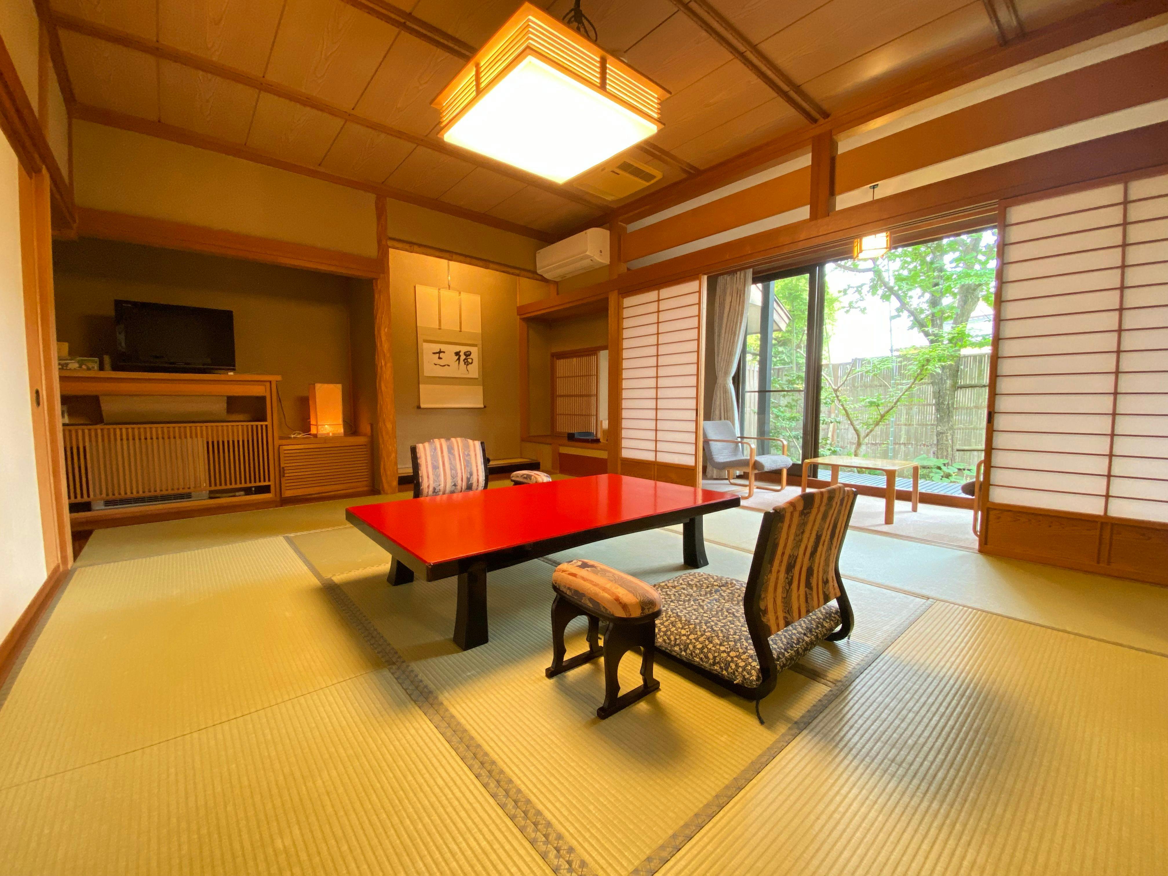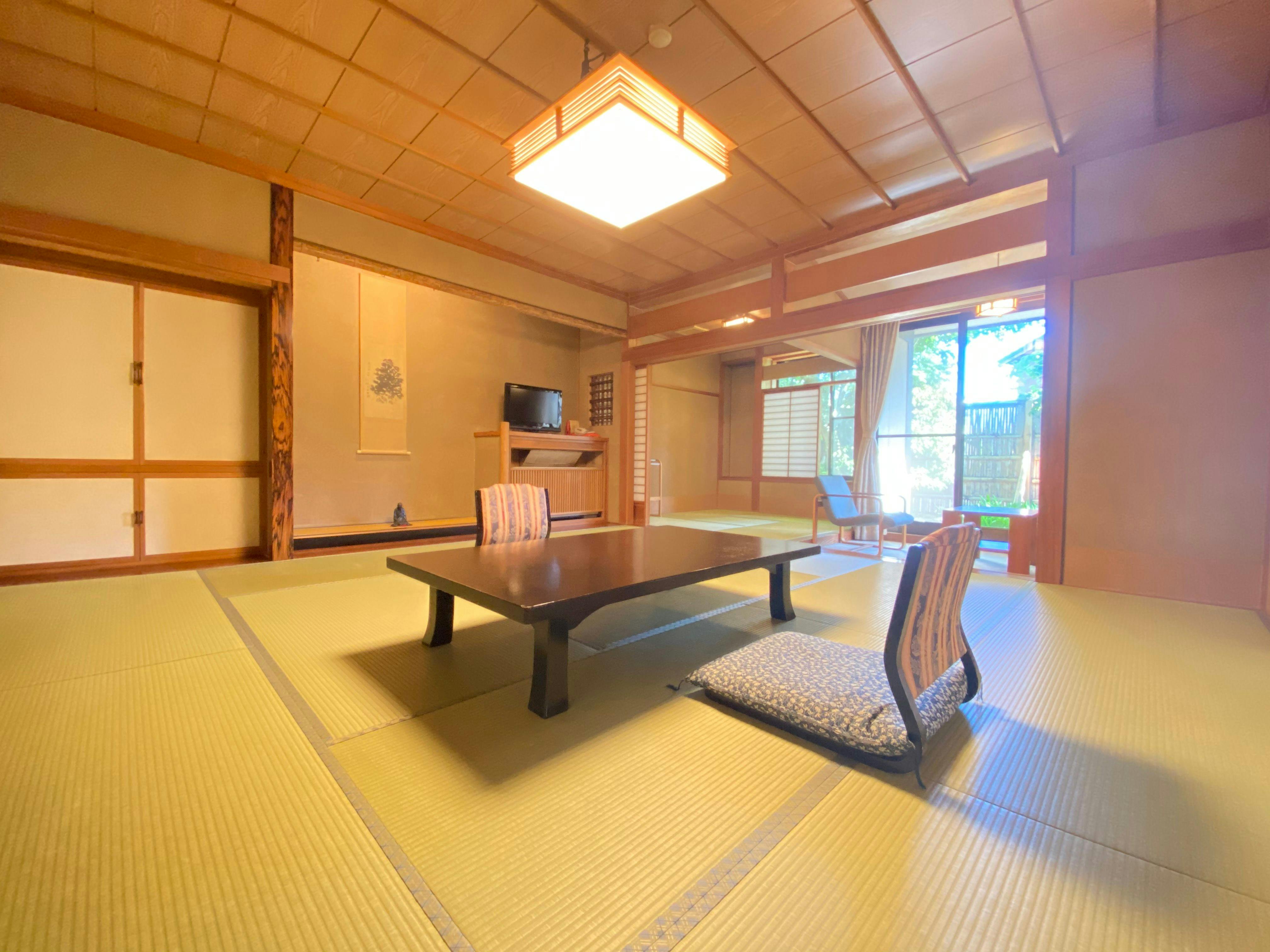 ゆったりと広い檜の露天風呂が付いた準特別室のお部屋です。
