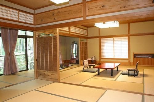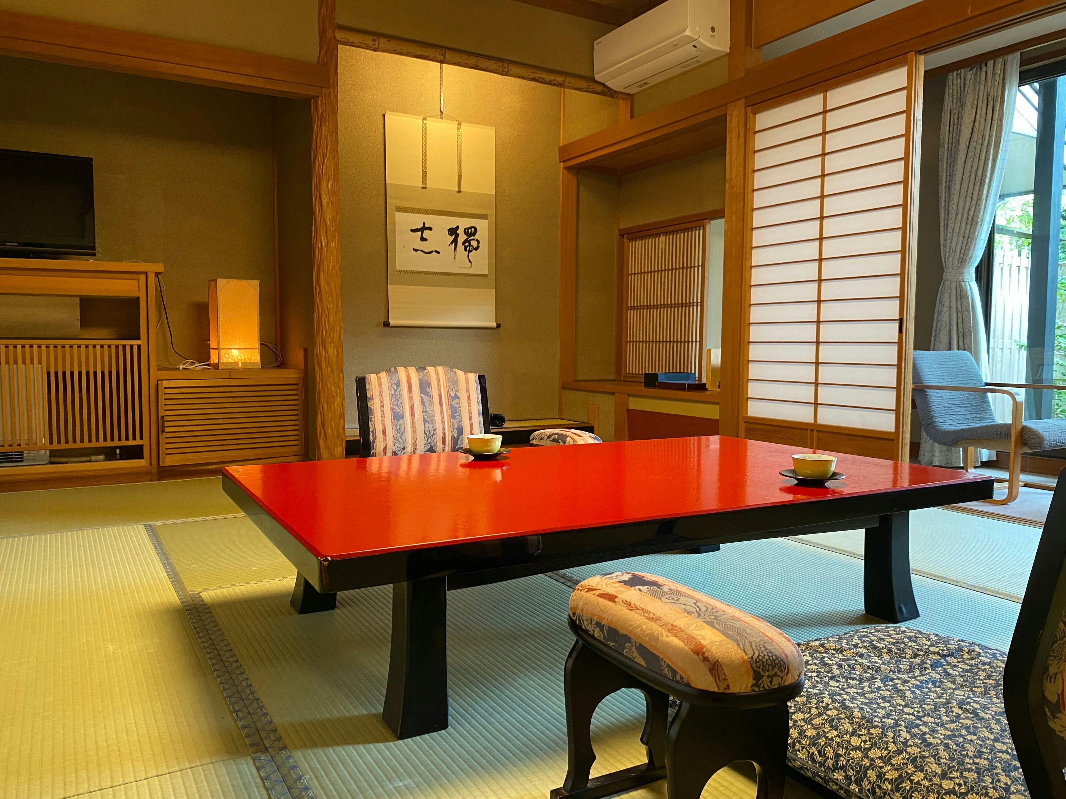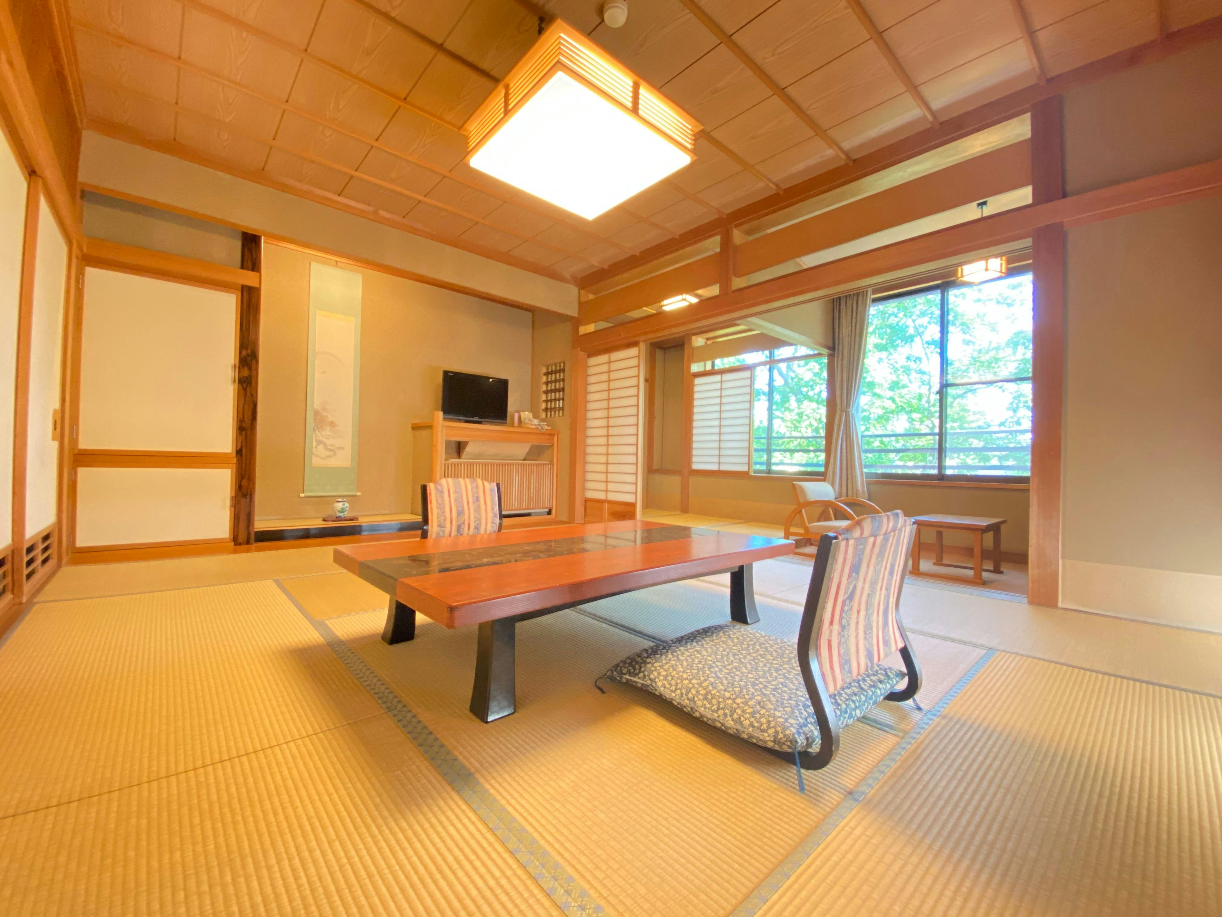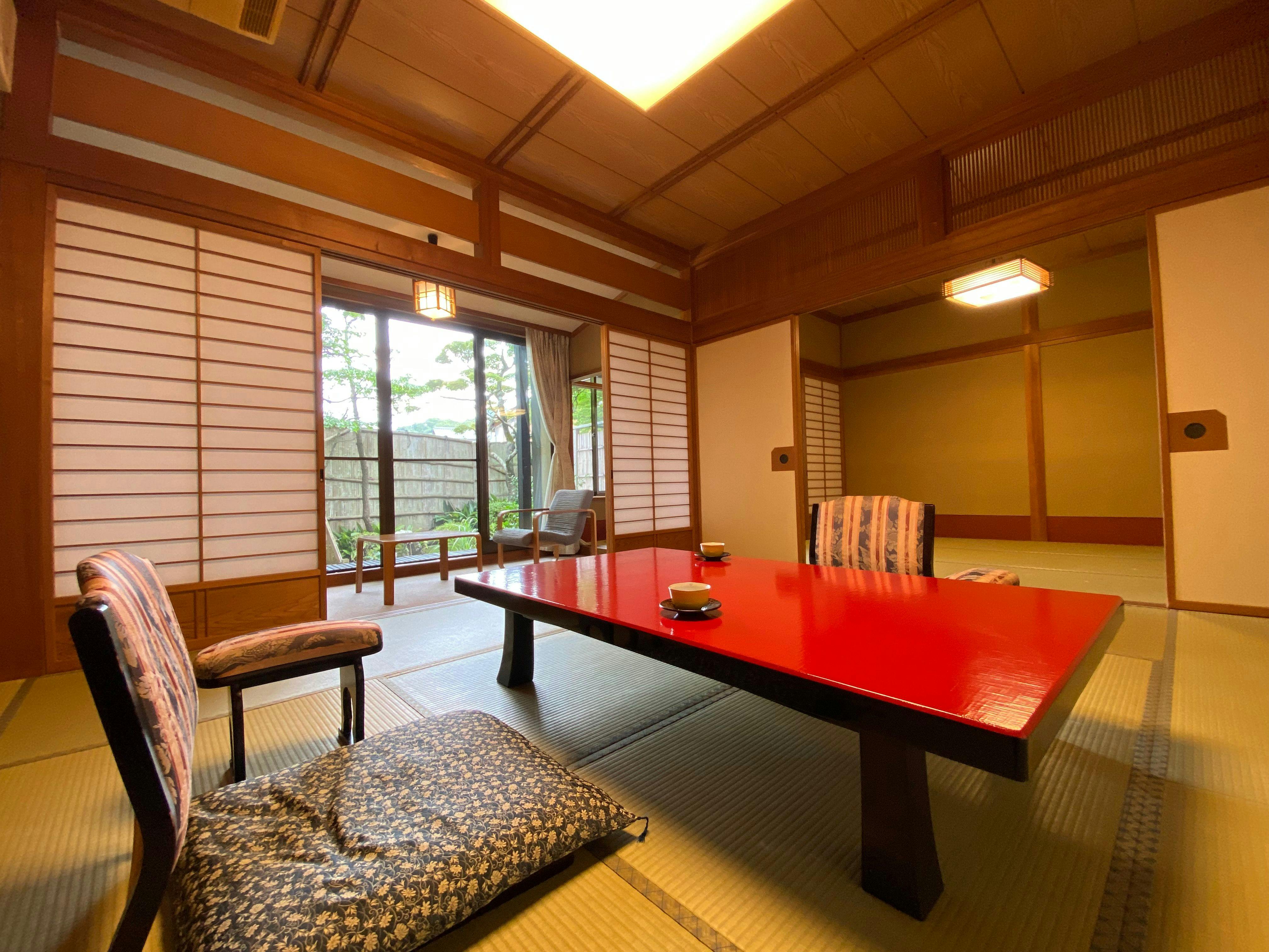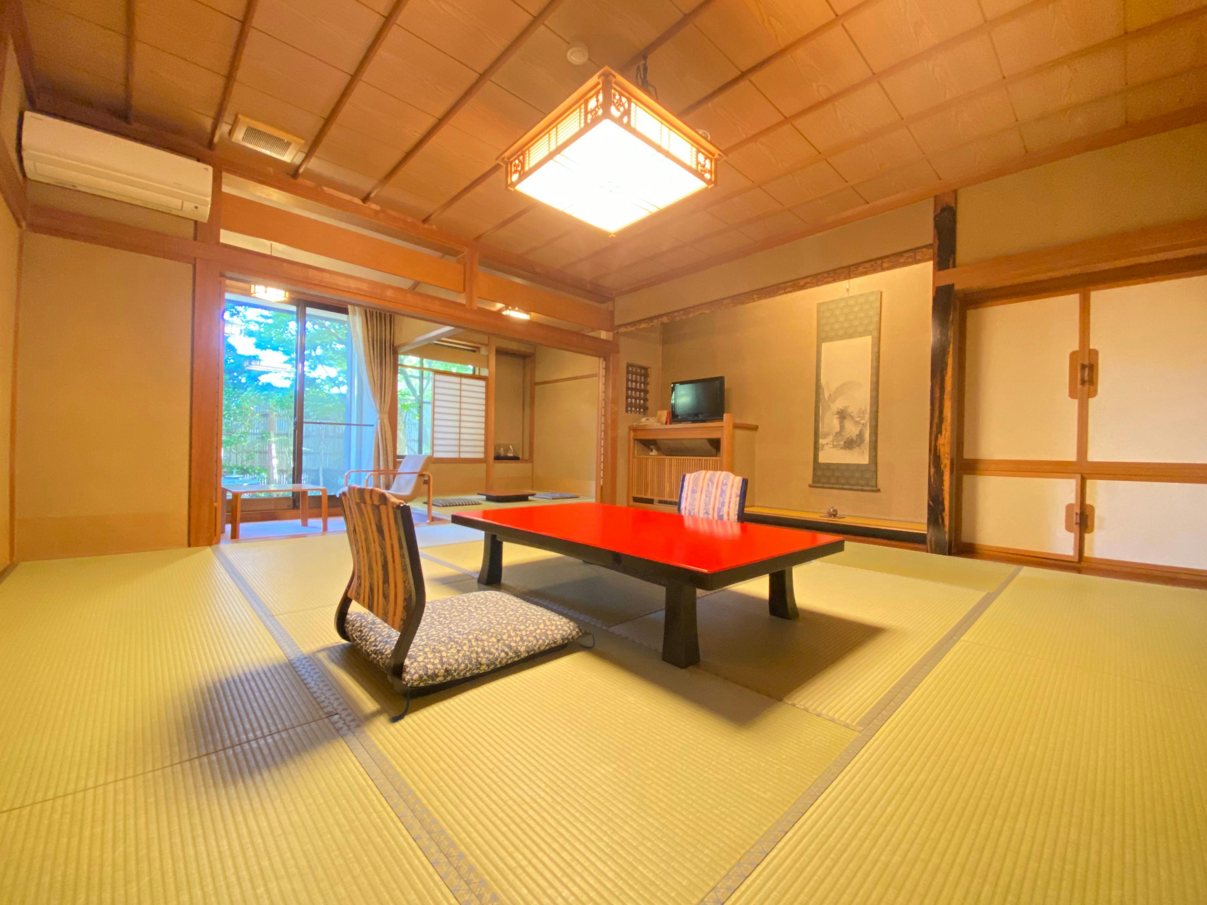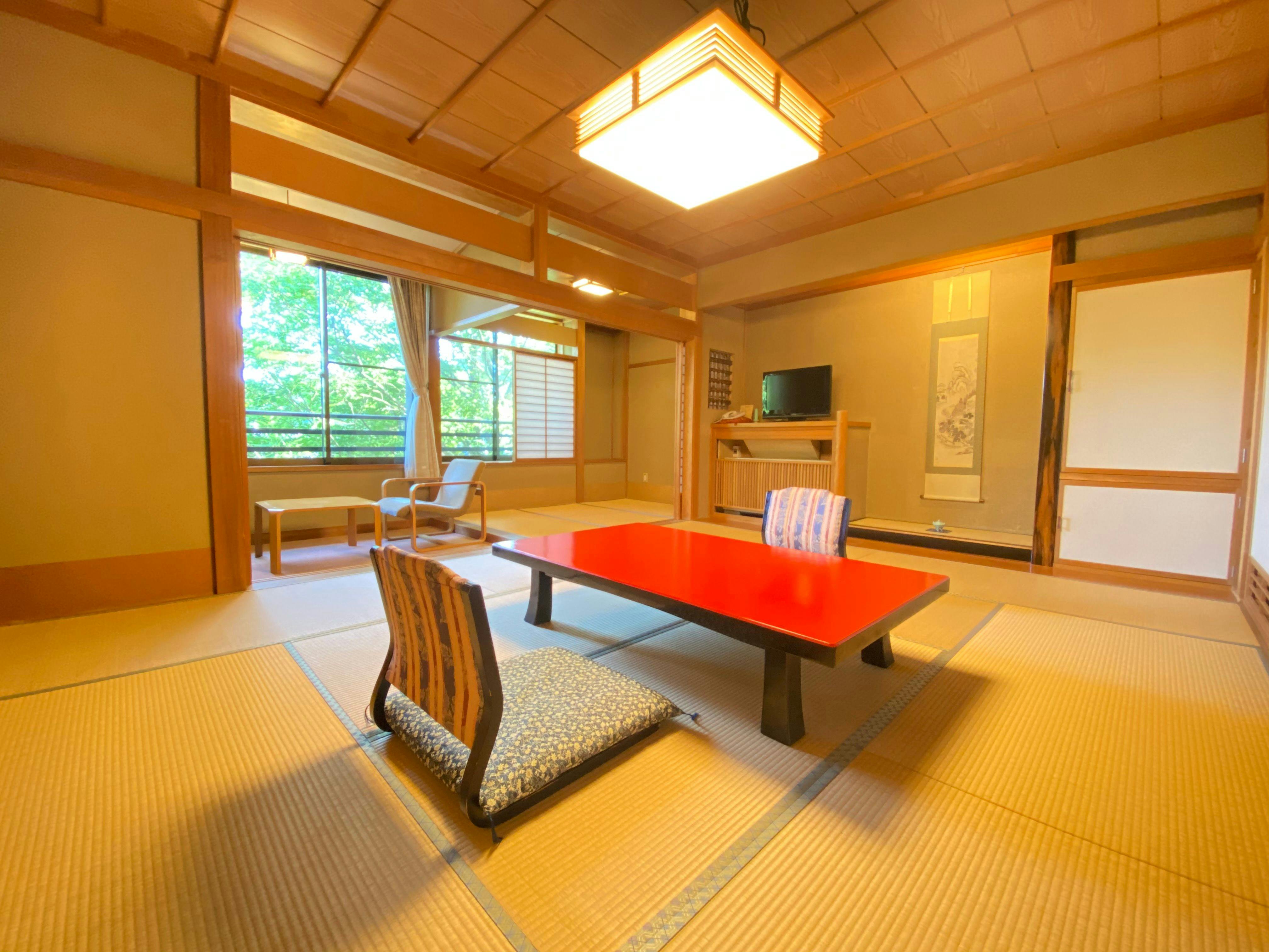 ゆったりと広い檜の露天風呂が付いた準特別室のお部屋です。