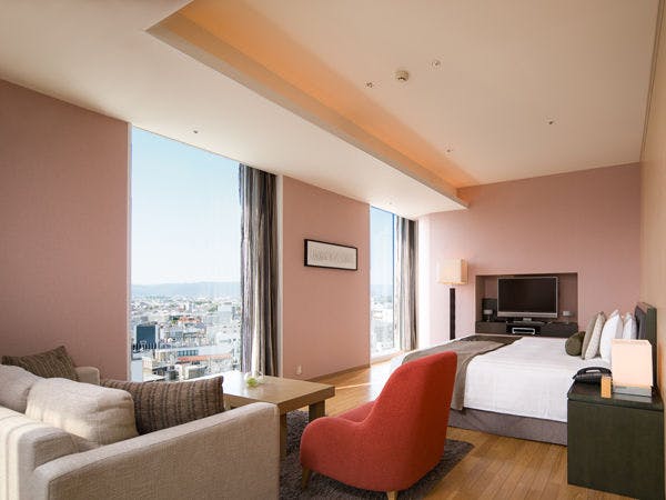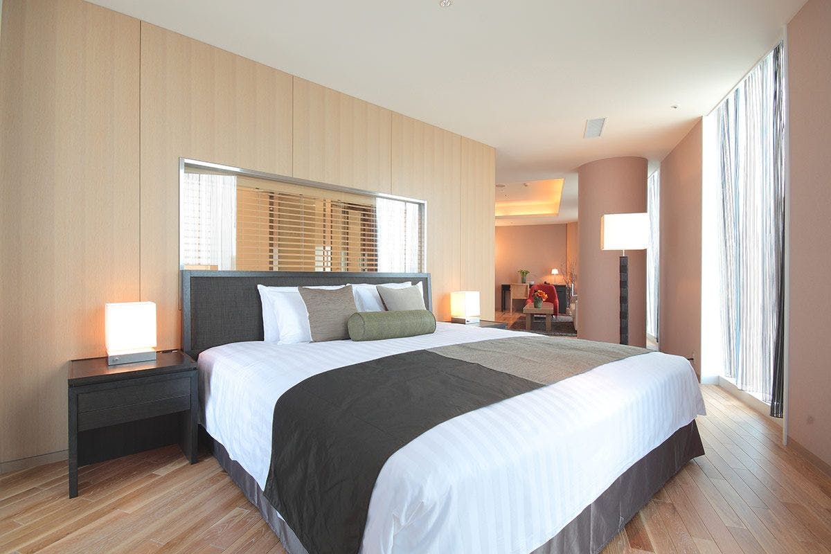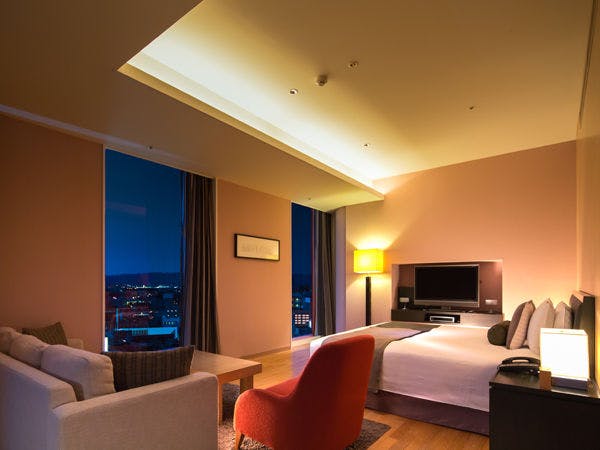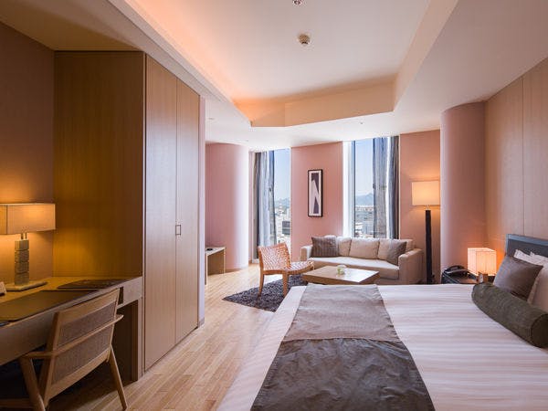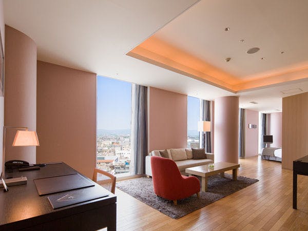 ホテルアークリッシュ豊橋の中で最も広いラグジュアリースイート。リビングスペースからベッドまでの仕切りのない、贅沢な空間が広がります。