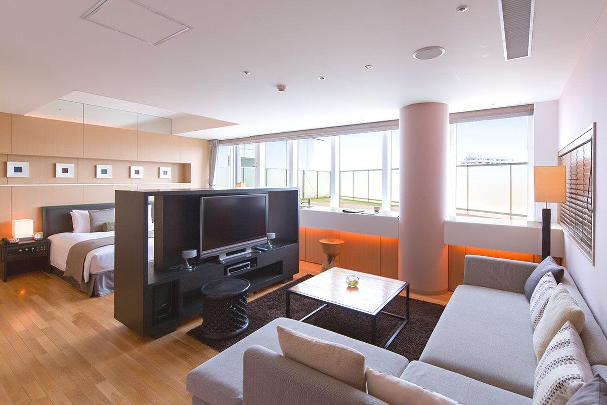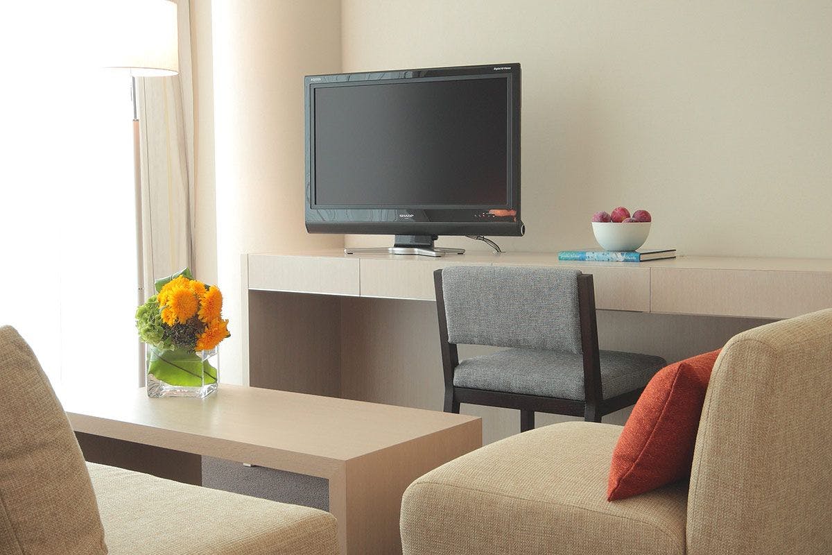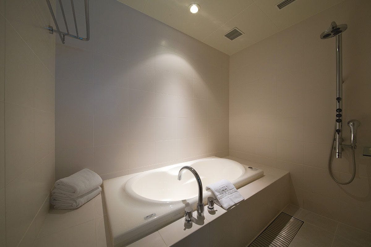 贅沢なリビングソファーや、ジェットバス機能を備えた広いバスタブは、上質な時間をお過ごしいただくためにご用意しました。