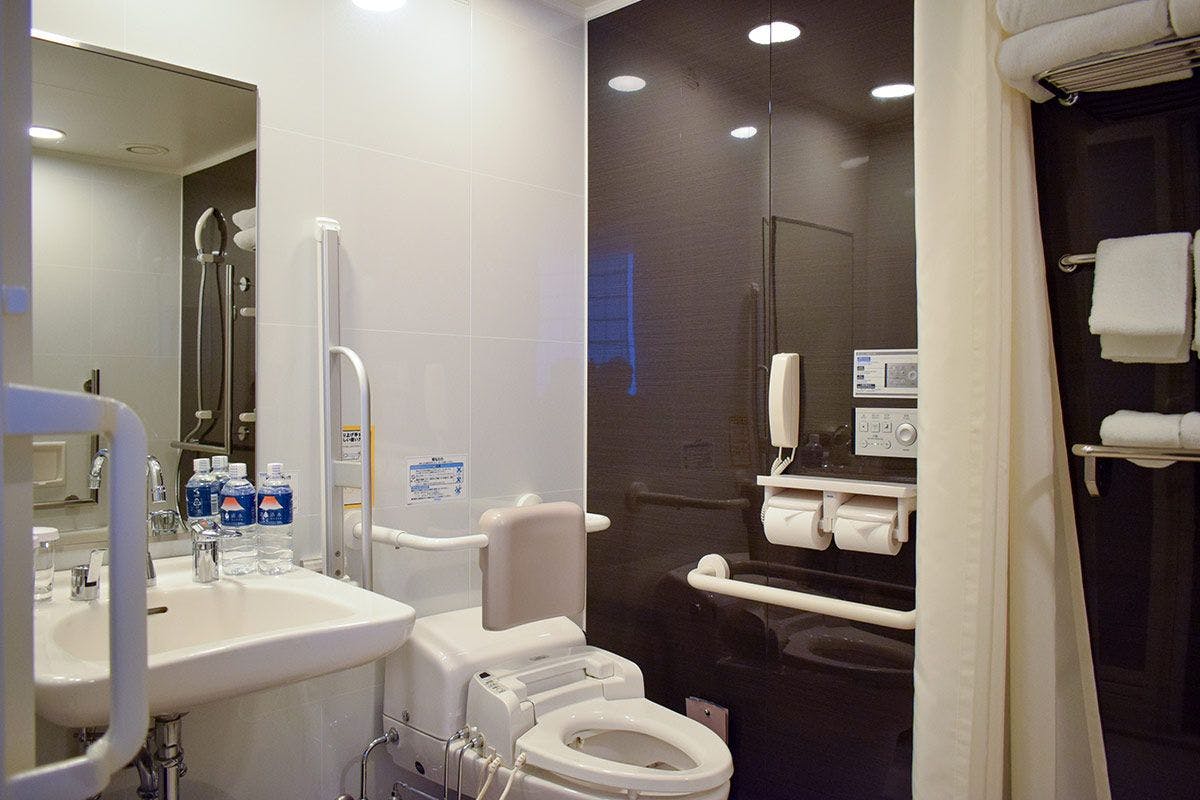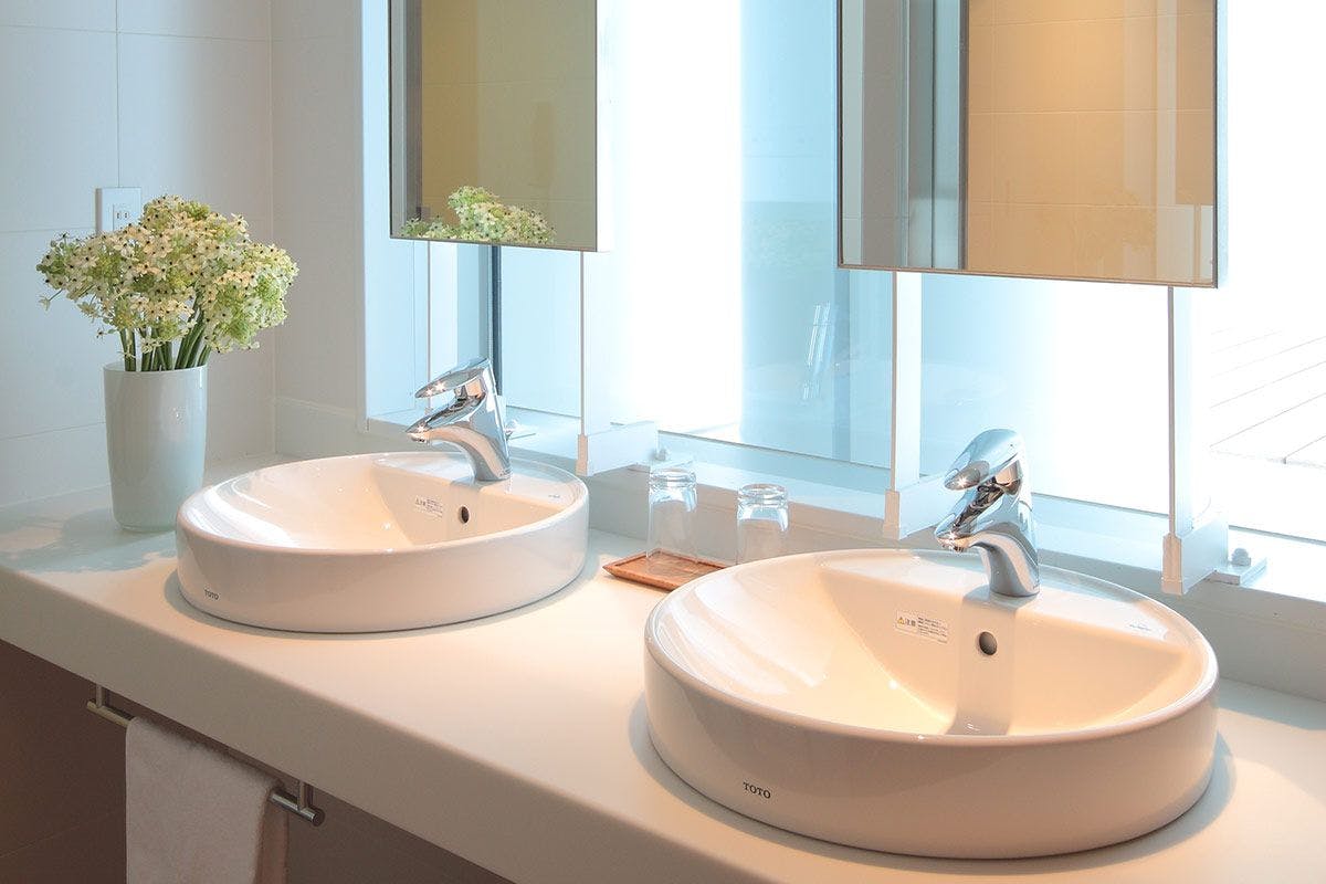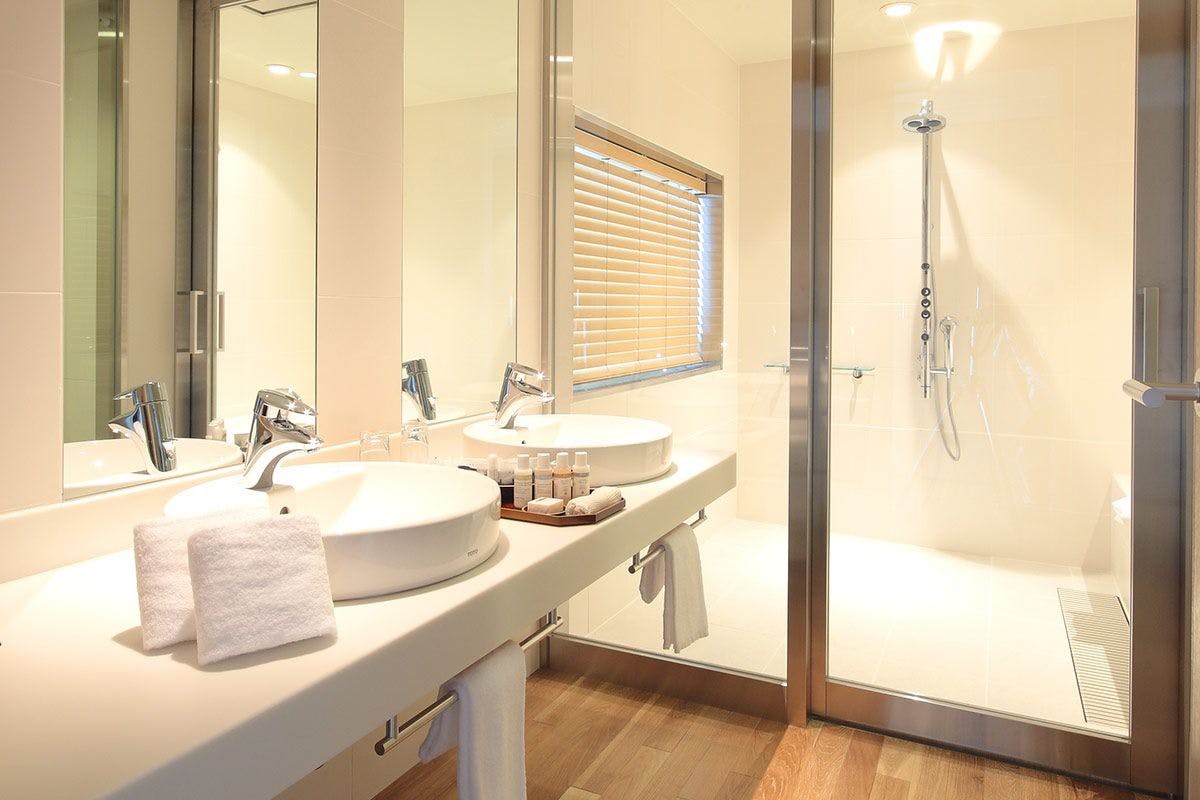 フローリングにラグマット、広いベイシン。自宅で過ごす以上の「心地よさ」を追求した空間です。