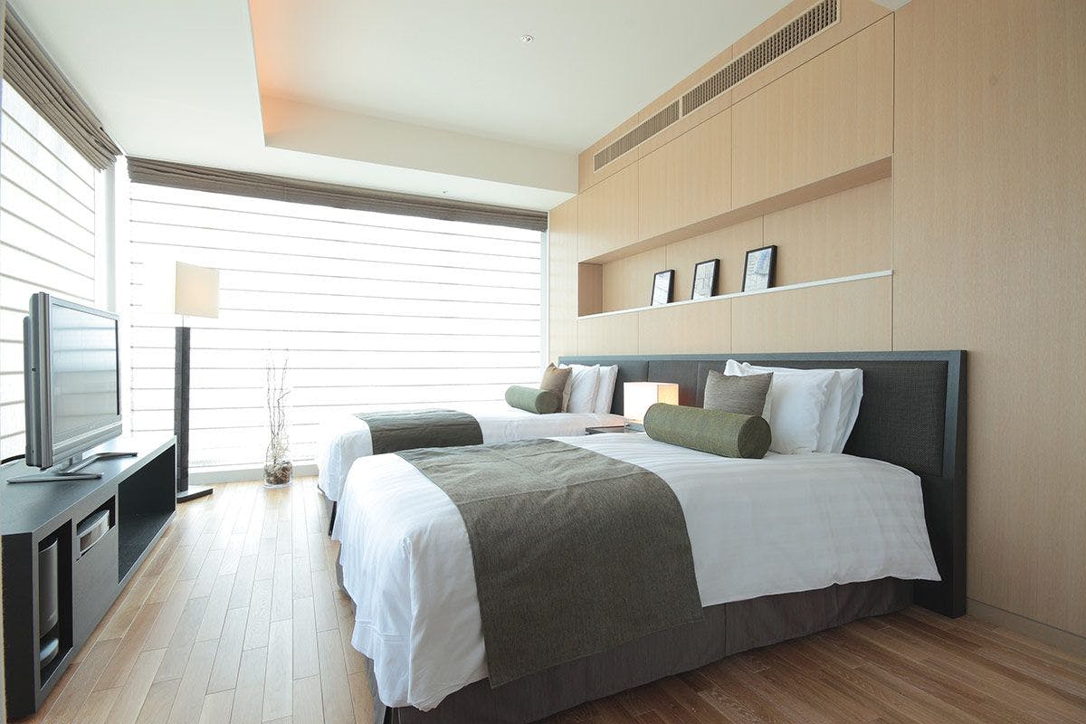 ■エグゼクティブフロア(10階)/禁煙室 ■120cm×200cmベッド×2台(シモンズ製 6.5インチ ダブルクッション)■バス・トイレセパレート ■バスアメニティ「Waphyto」 ■BOSE製2.1chホームシアターセット ■42型4Kテレビ設置 ■ミニバー(有料) ■ネスプレッソマシーン