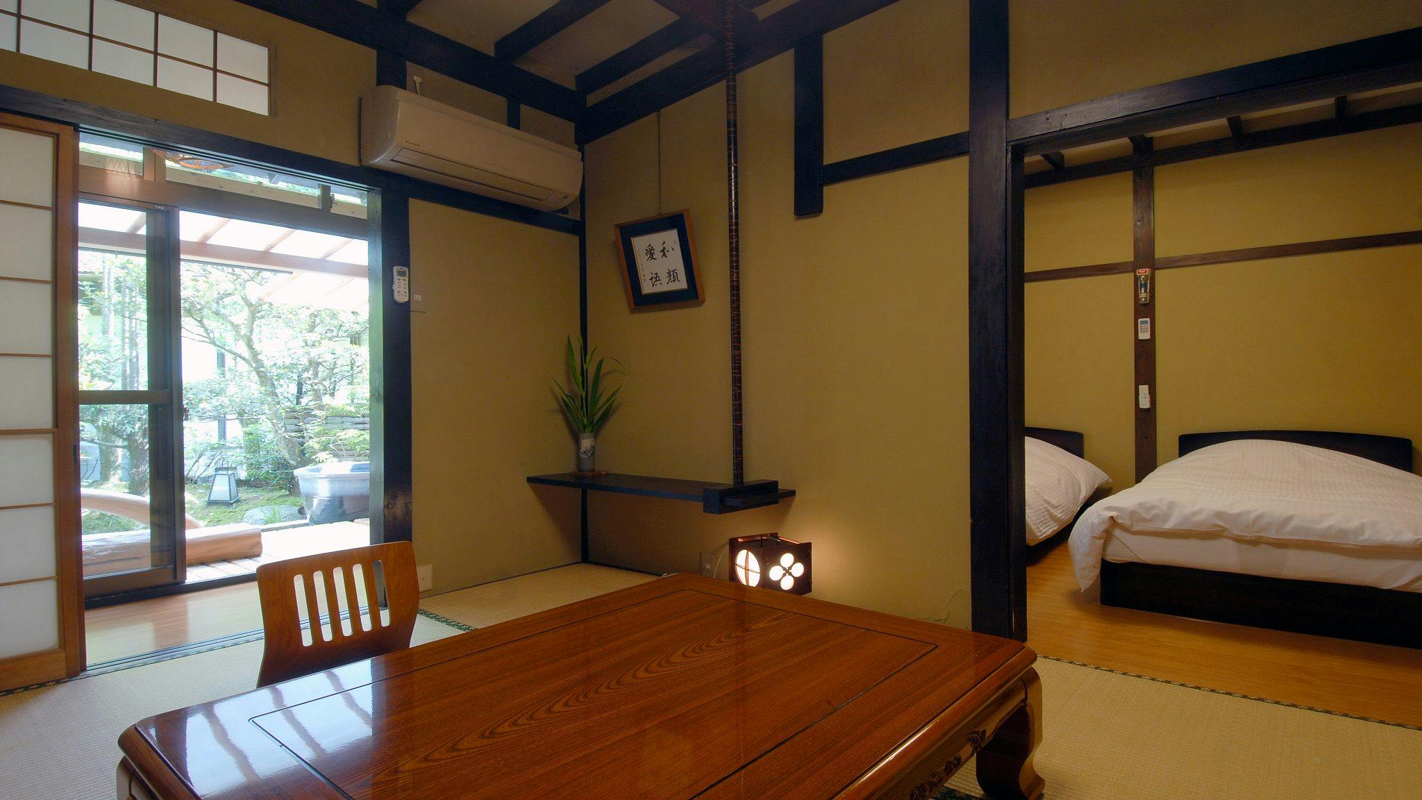 6帖+6帖の洋室(ツインベッド)からなり、ベッドに慣れたお客様にご好評いただいております。専用露天風呂付