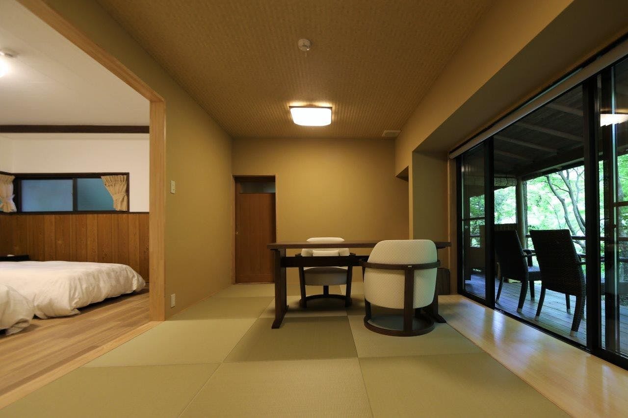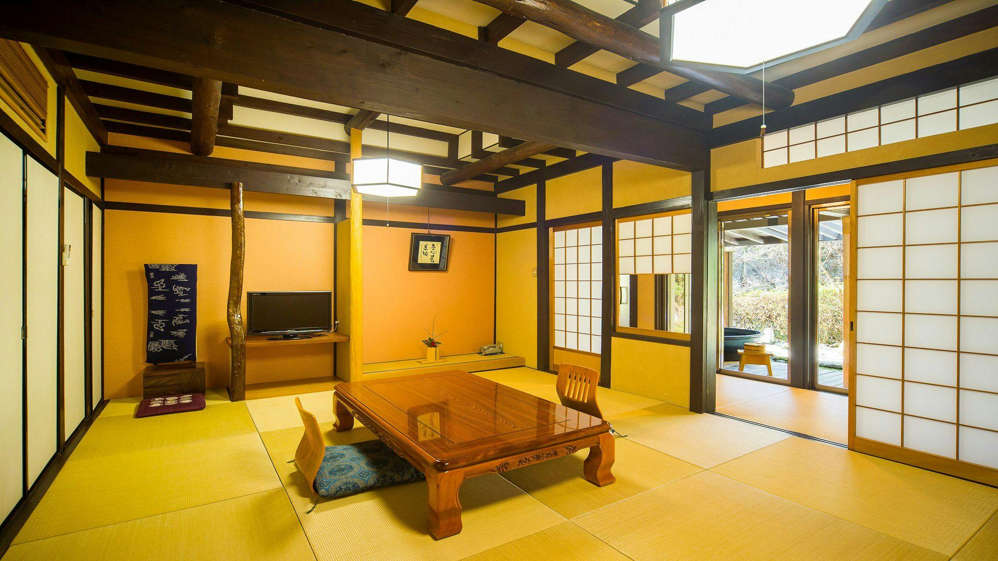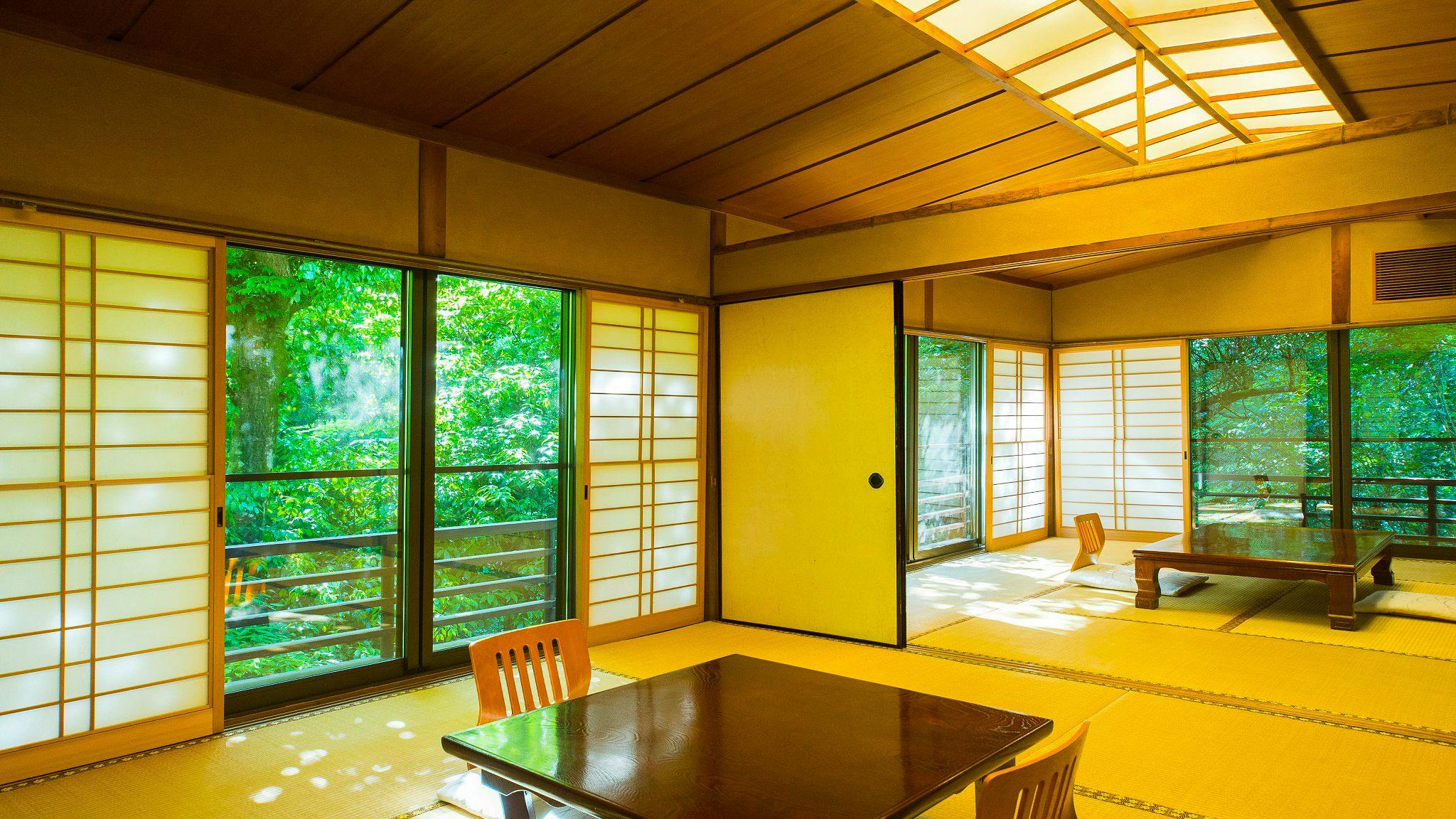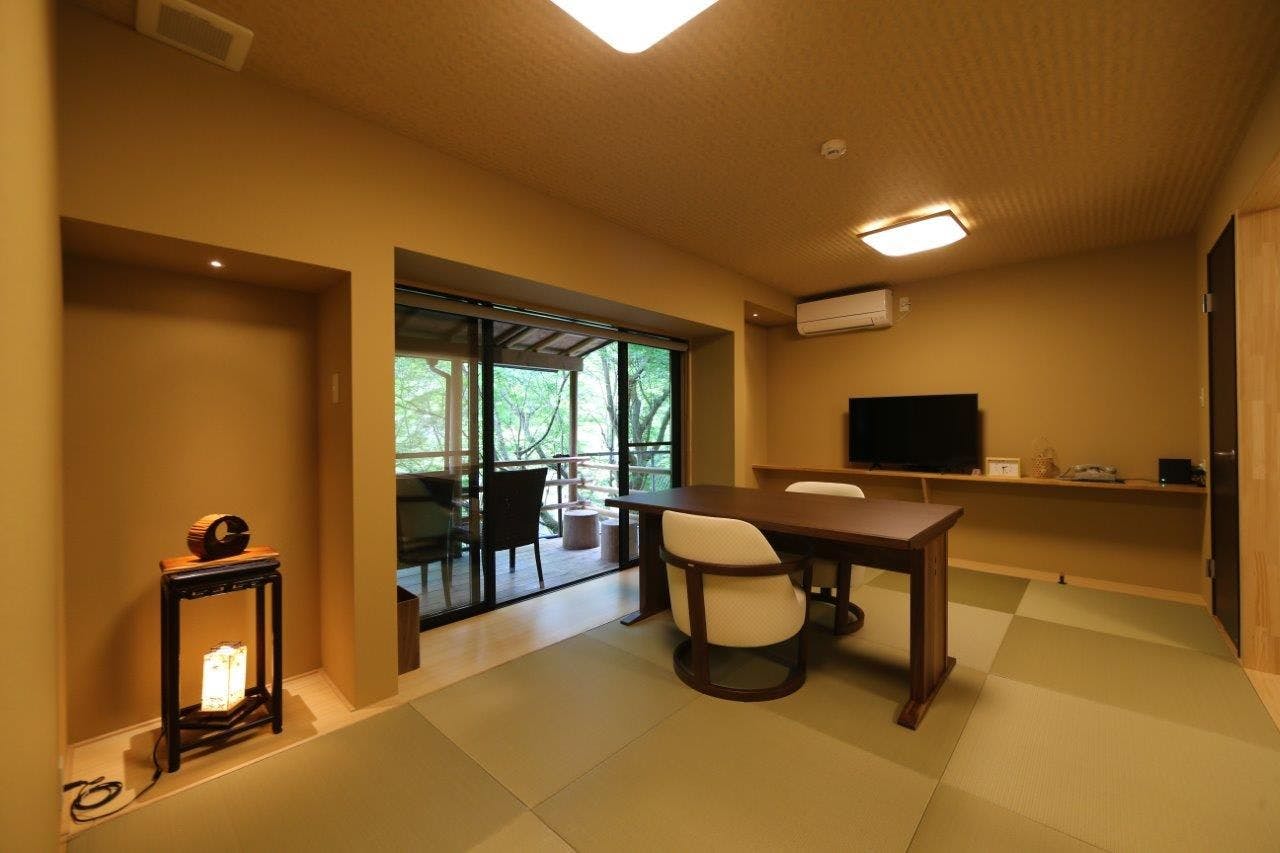 和室10畳+専用露天風呂付しっとりとした静かな空間で季節の移ろいと美しい自然をお楽しみ頂けます。