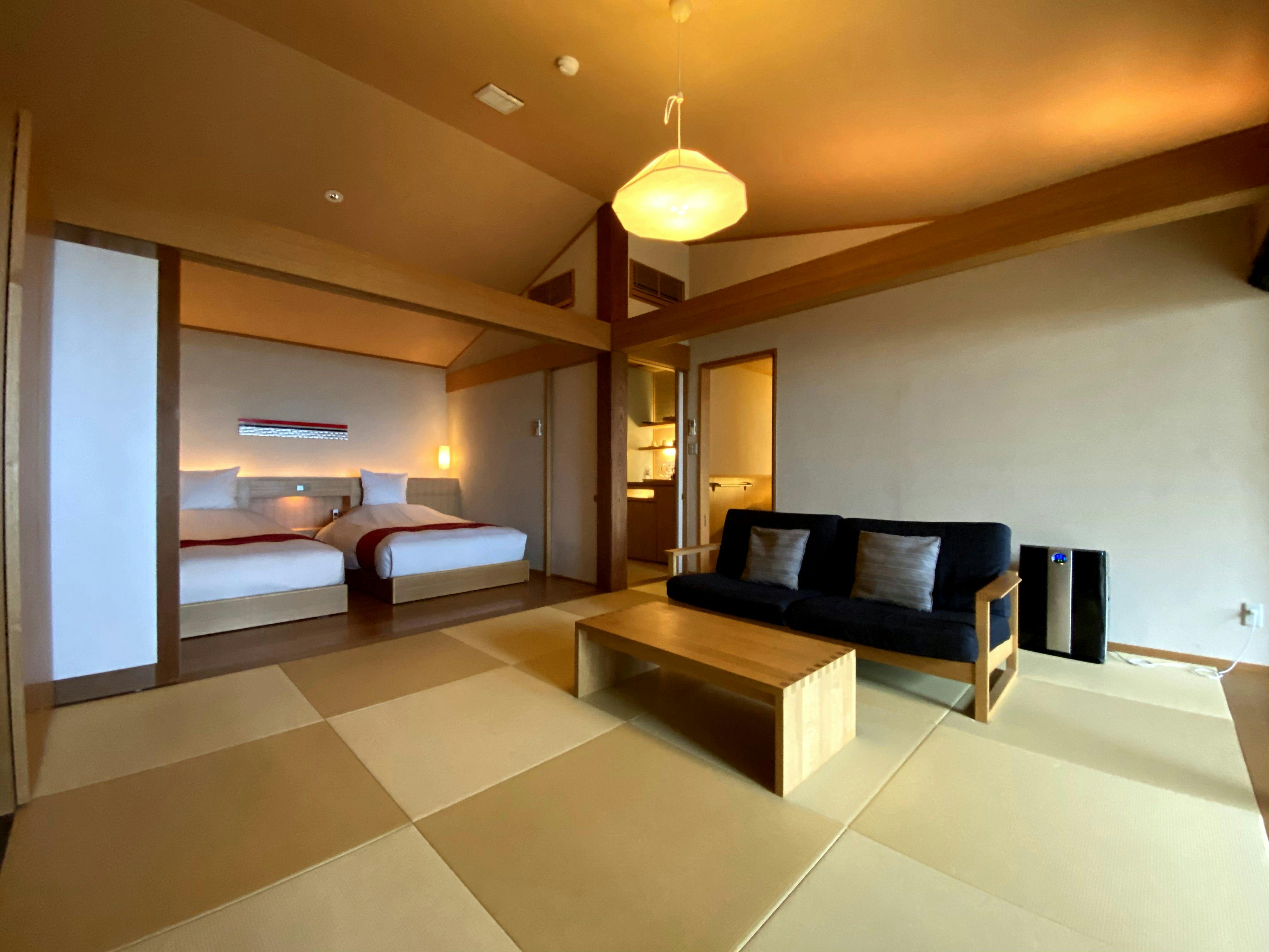 客室内に専用のキッチンとダイニングを備え、お食事は専属の料理スタッフがお部屋で最後の仕上げを記念日などのちょっとした特別な日や、プライベートを大切になさりたいお客様にぴったりのお部屋ですThe Earthが旅館の“文化”として残してゆきたい「部屋食」へのこだわりのお部屋です(※朝食はレストランとなります)