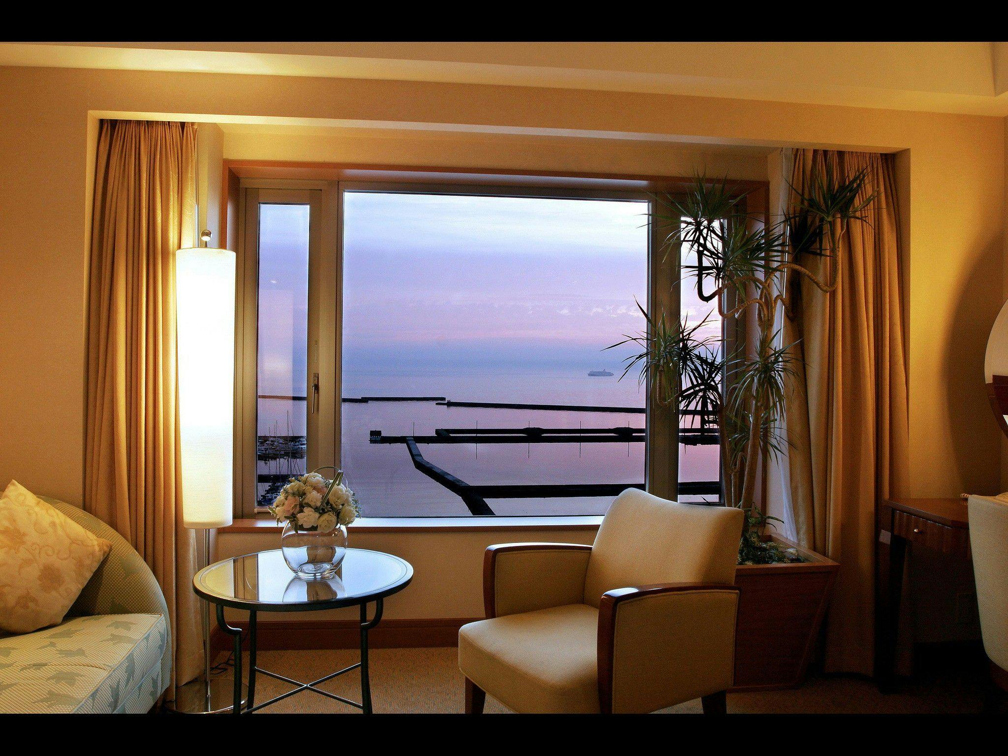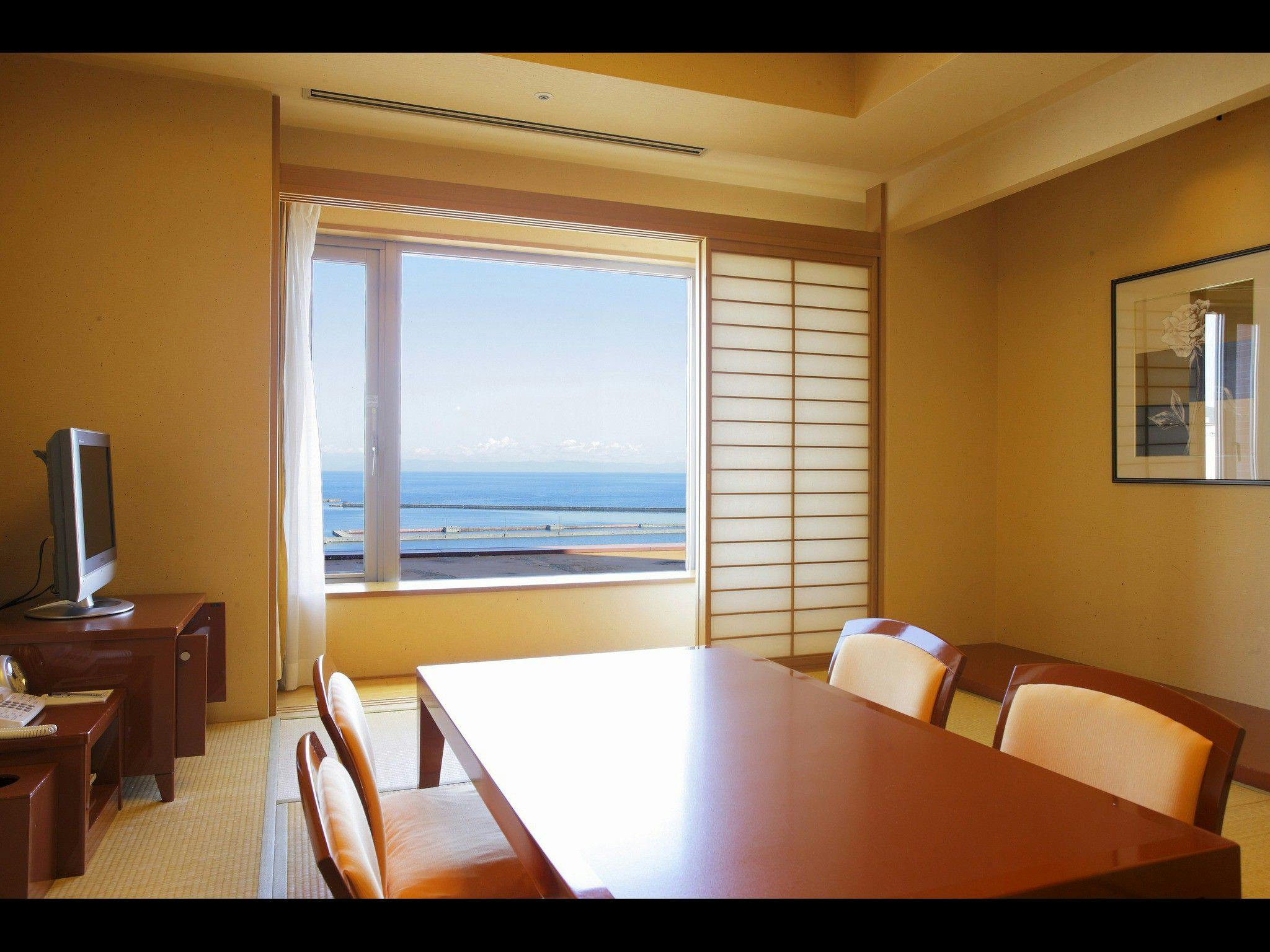 大きな窓から見渡す石狩湾は絵画のような美しさ。