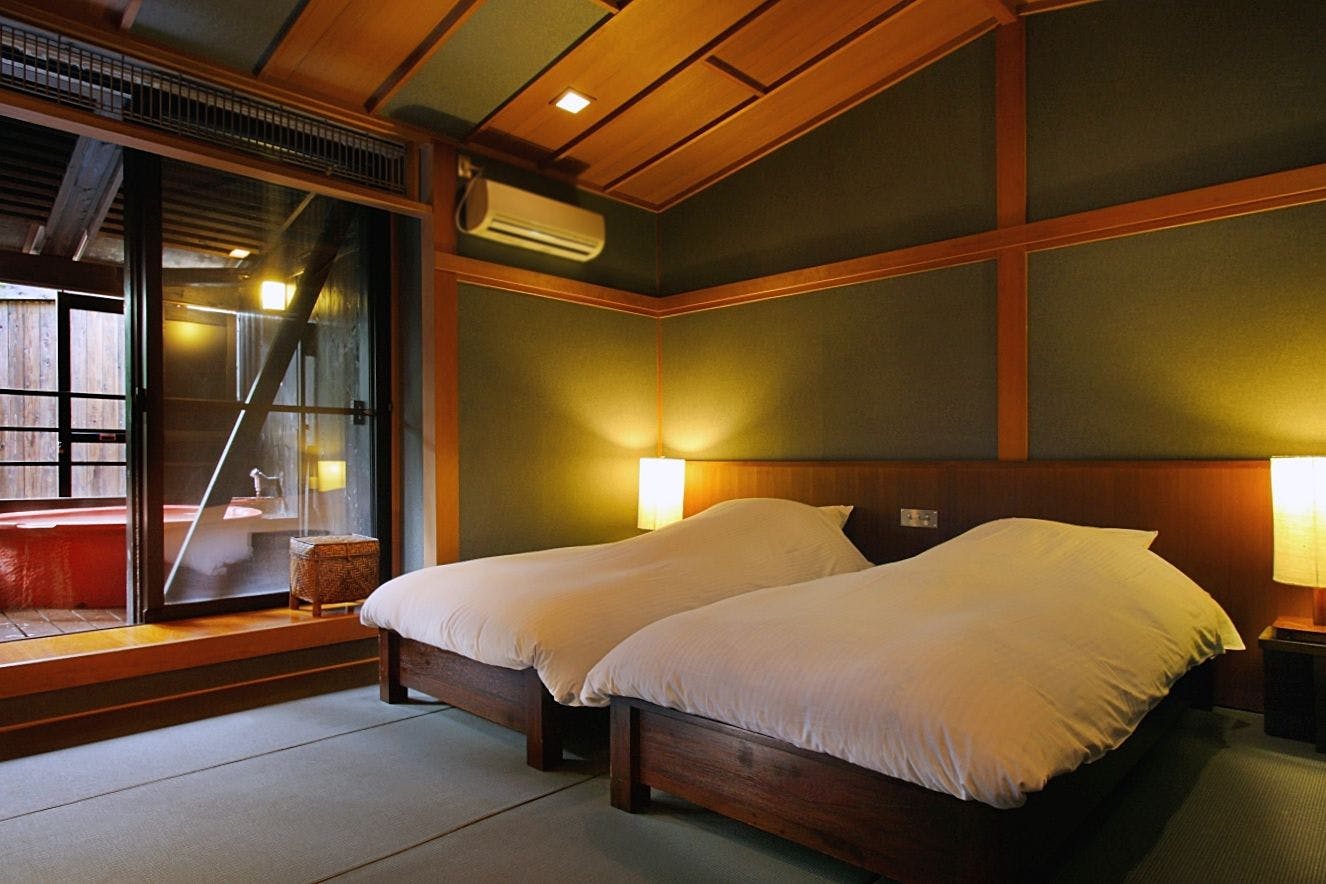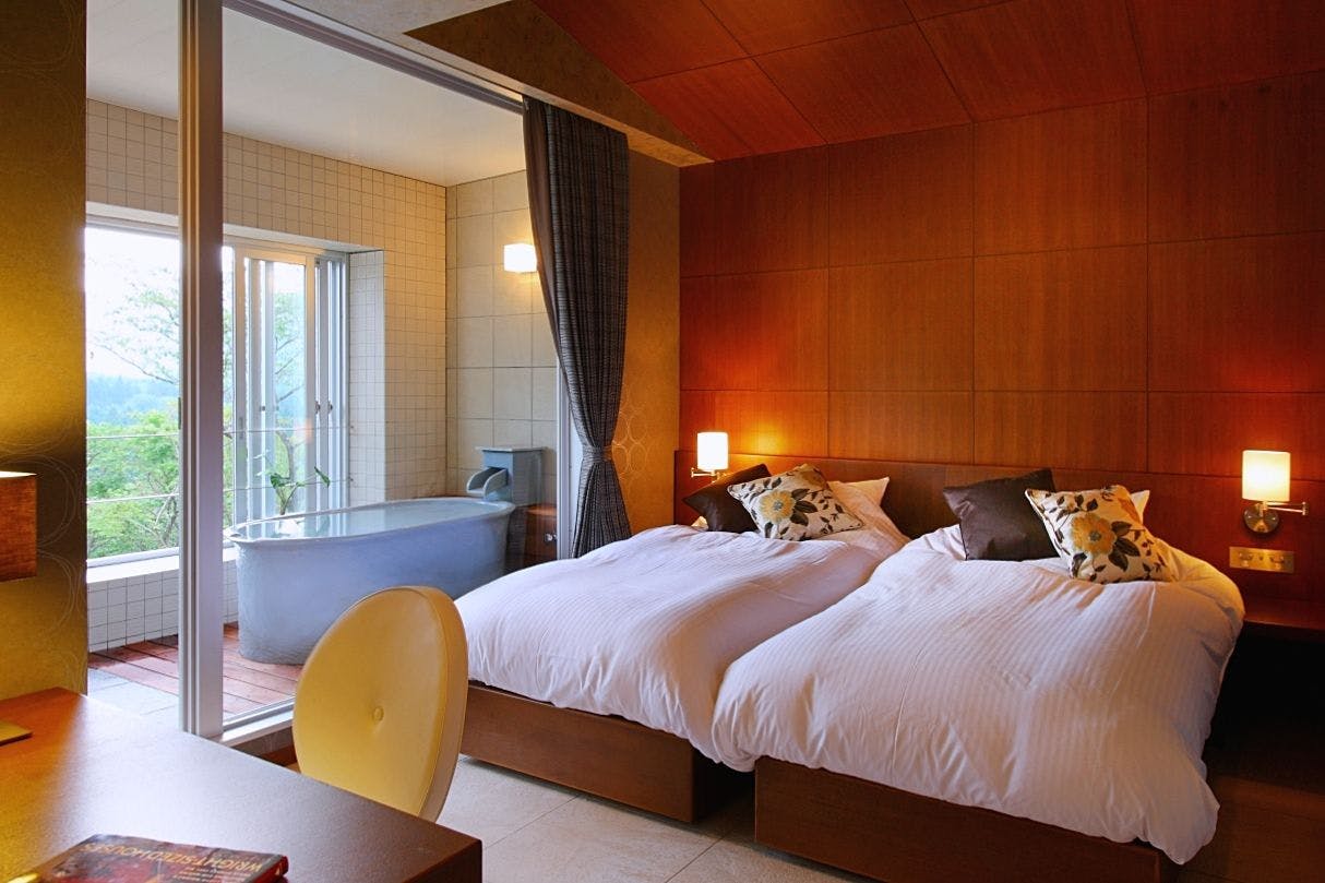 畳の和室にツインベッド、ゆとりを大切にした二間続きの和洋室です。