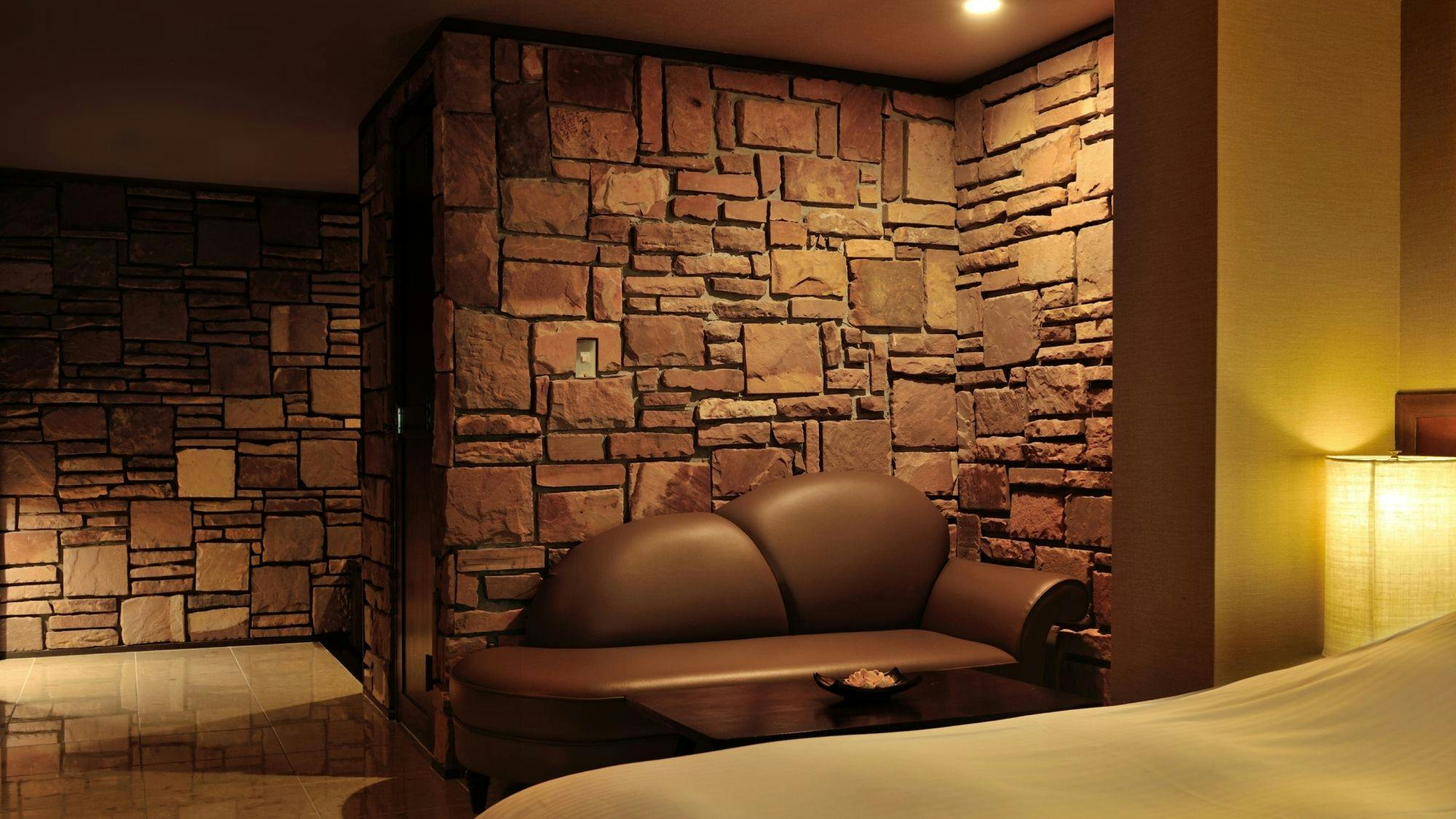 照度を落とした室内は洞窟を思わせる砂岩の壁に天然石のパワーを感じるフロア、