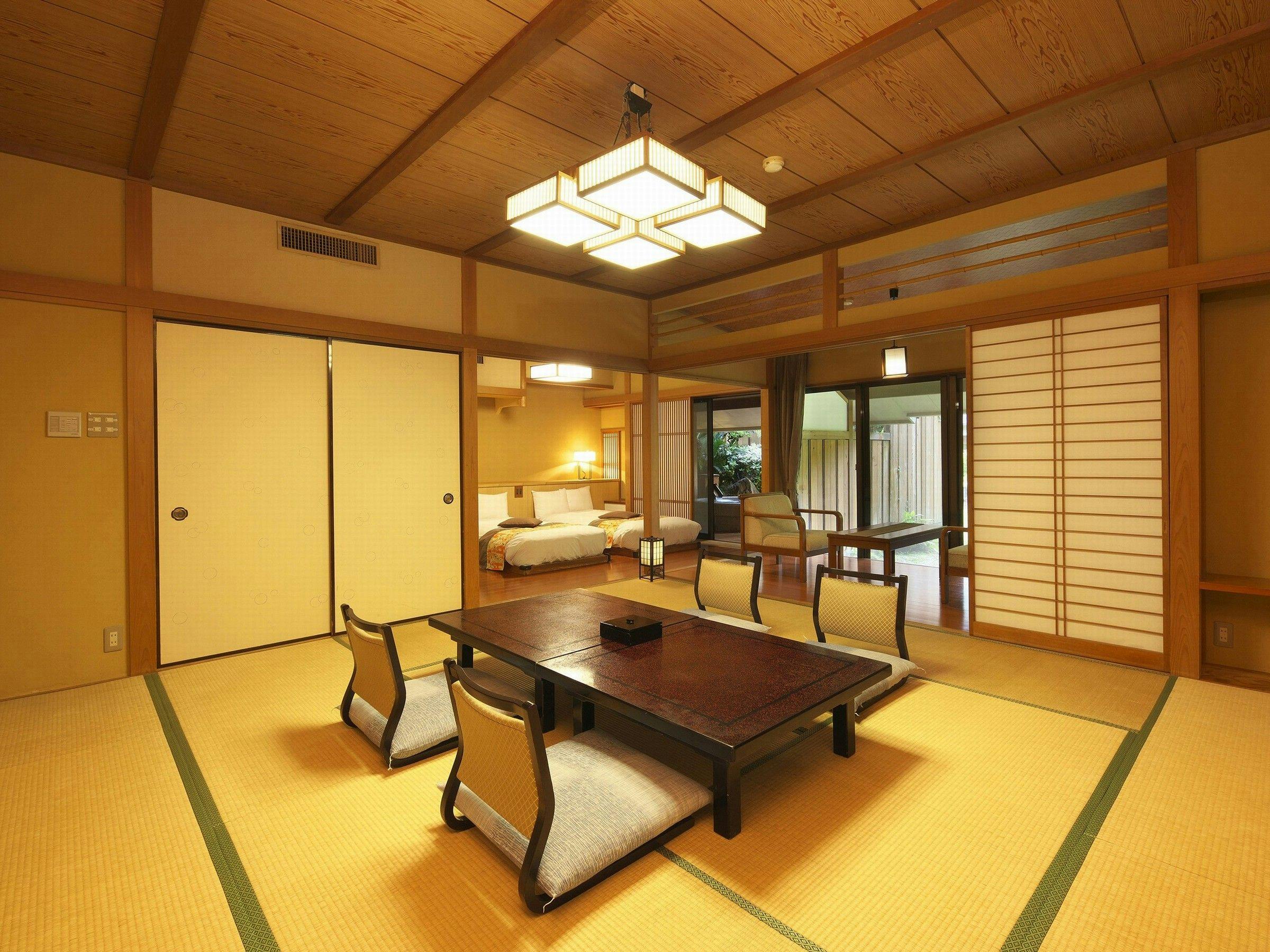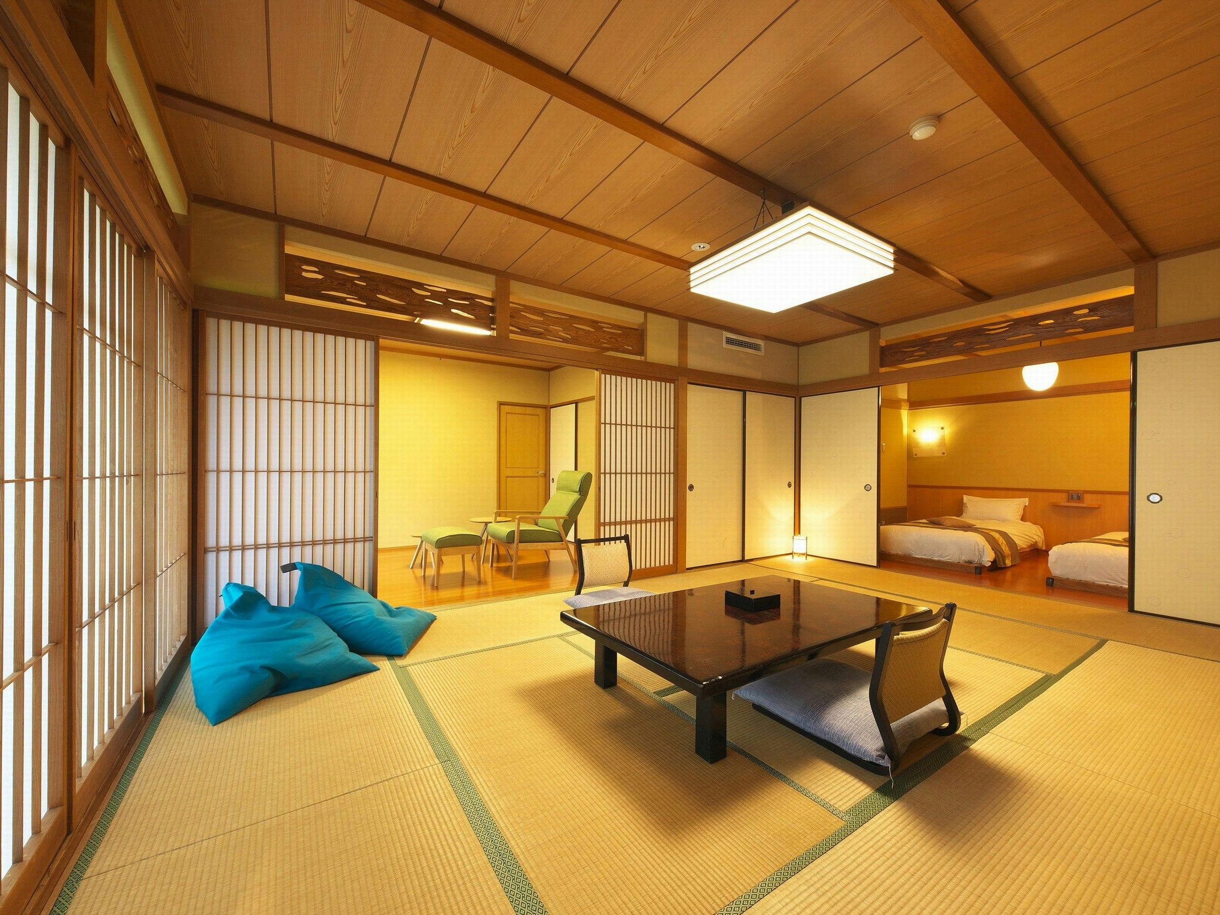 広々とした12畳の和室に、モダンなベッドをご用意したお部屋。