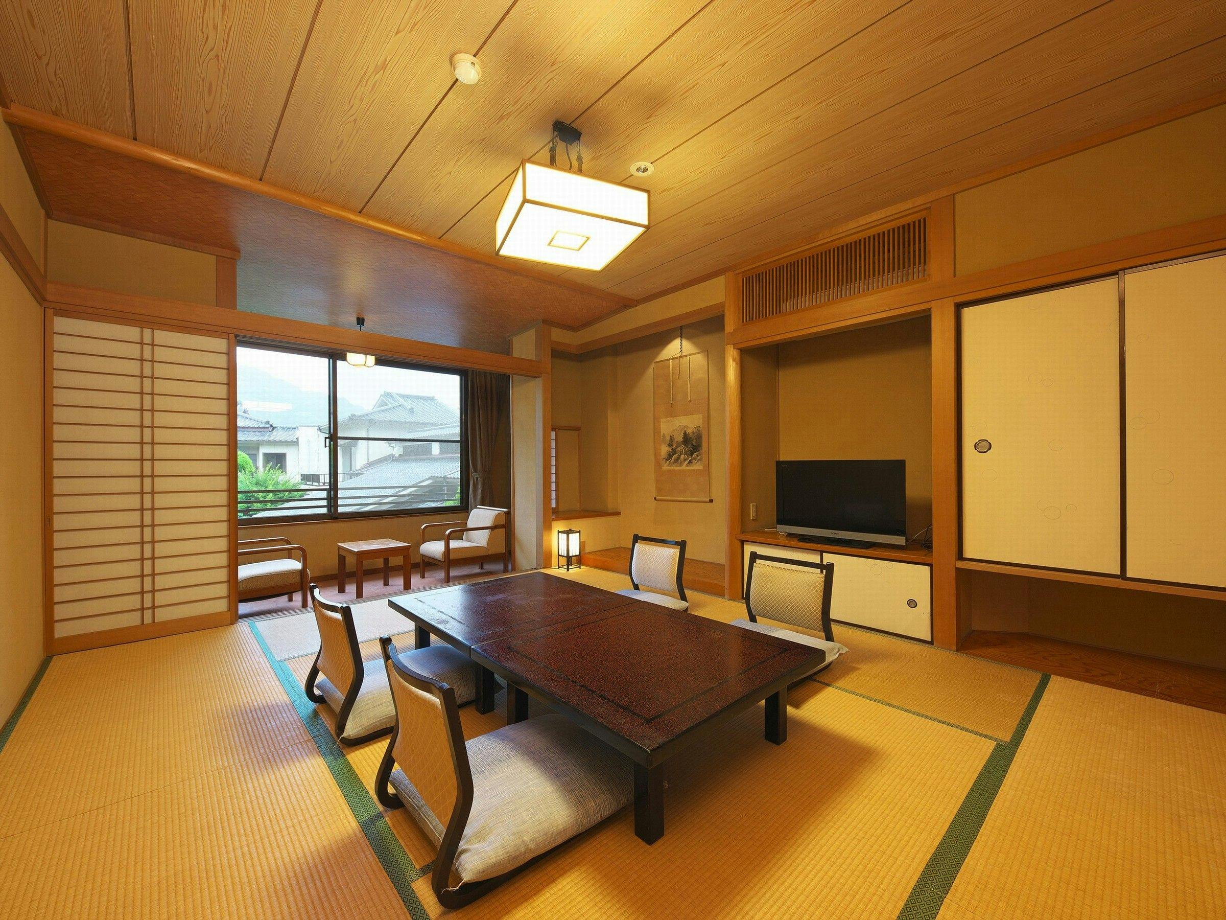 花棟の2階にあたりお庭を見ながらお部屋でゆっくりできる花月亭のスタンダードのお部屋でございます。純和風の佇まいで落ち着いたしっとりとした静寂の時間をお楽しみくださいませ。
