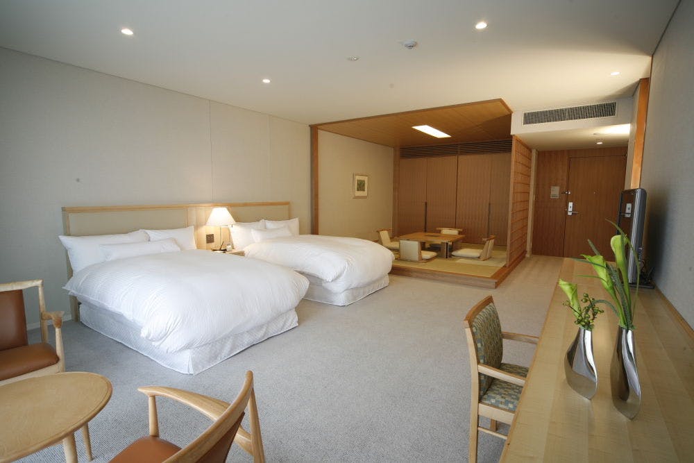 【禁煙】タイプの洋室ツインまたは和洋室となります。