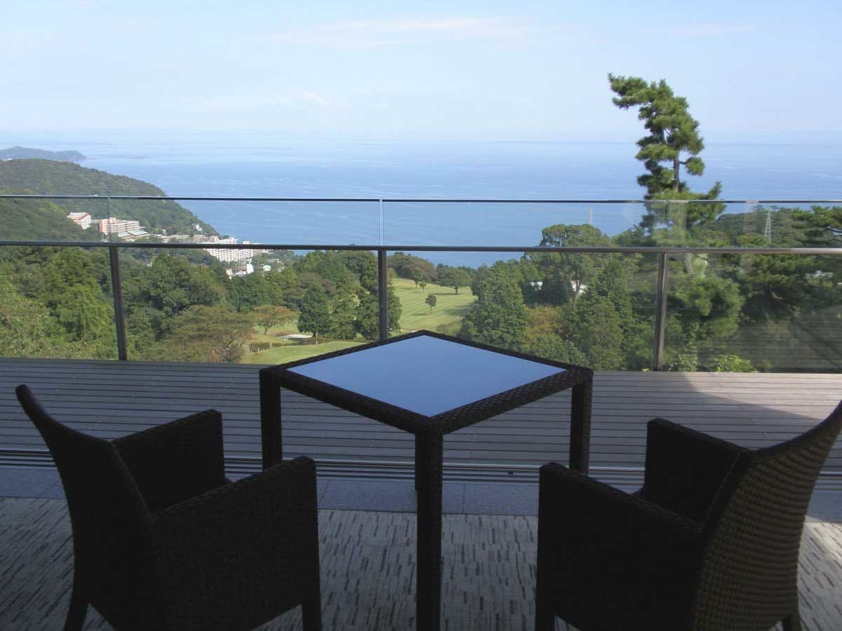 熱海の閑静な高台に建つ絶景が楽しめる洗練された大人の空間。全室に源泉掛け流しの浴室を完備。旬の食材を吟味した和食をご堪能いただけます。