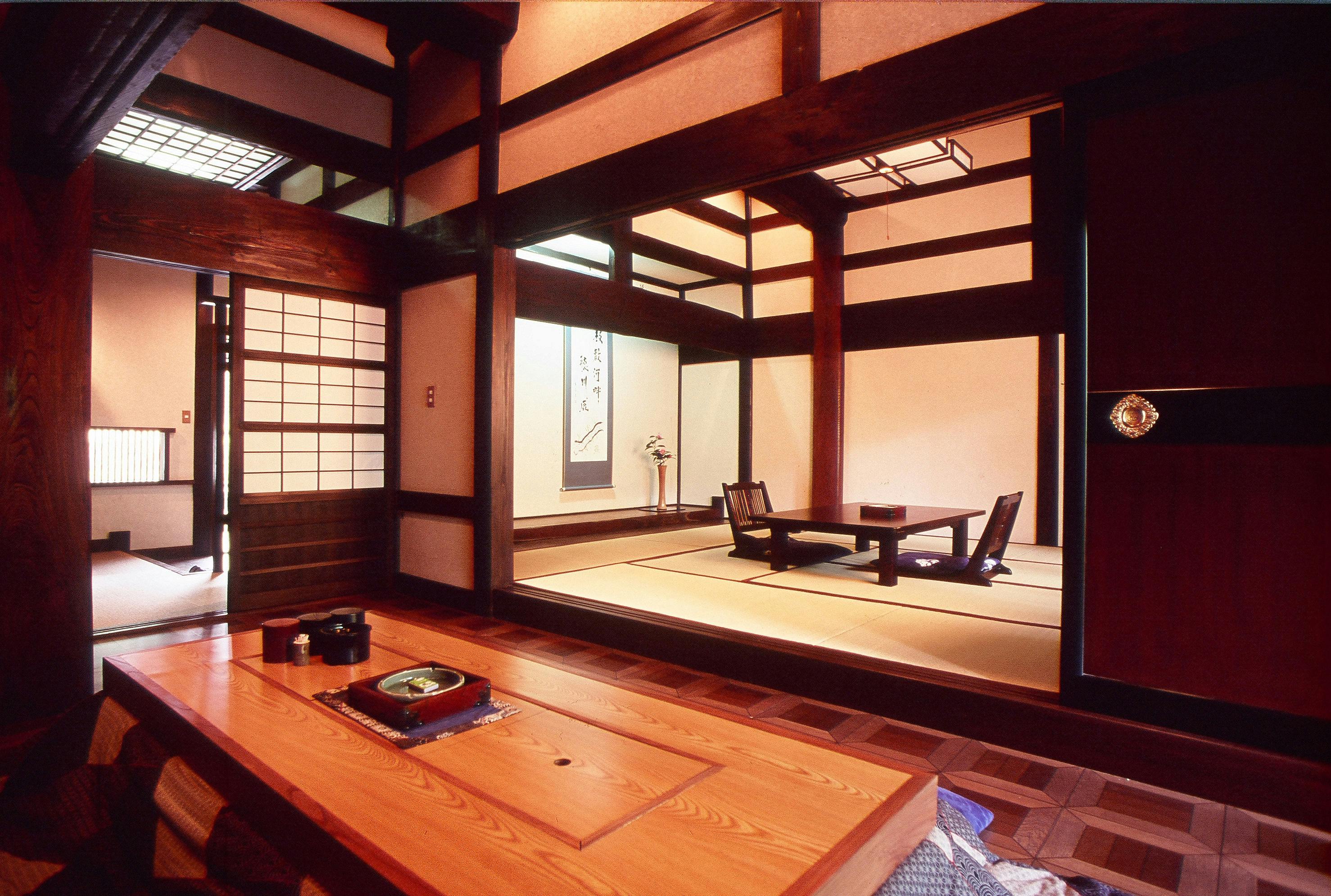 適度な照明の明るさが、よりいっそう優しい雰囲気をかもし出しているお部屋です。客室付露天風呂はヒーリング効果大。自然に心癒され、ゆっくりとくつろいでいただけます。※普段の喧騒から離れていただけるよう、テレビのご用意はございません。 木々の緑を眺め、川のせせらぎに包まれながら、ごゆっくりとお寛ぎ下さい。【喫煙をご希望の方へ】 露天風呂付き客室の月見台、ロビーテラスのみ喫煙可能です。他は客室を含め禁煙となっております。