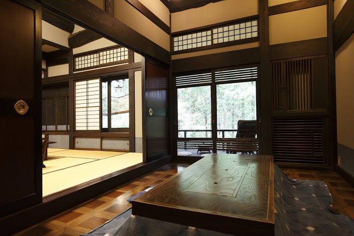 ※普段の喧騒から離れていただけるよう、テレビのご用意はございません。 木々の緑を眺め、川のせせらぎに包まれながら、ごゆっくりとお寛ぎ下さい。【喫煙をご希望の方へ】 露天風呂付客室の月見台、ロビーテラスのみ喫煙可能です。他は客室を含め禁煙となっております。
