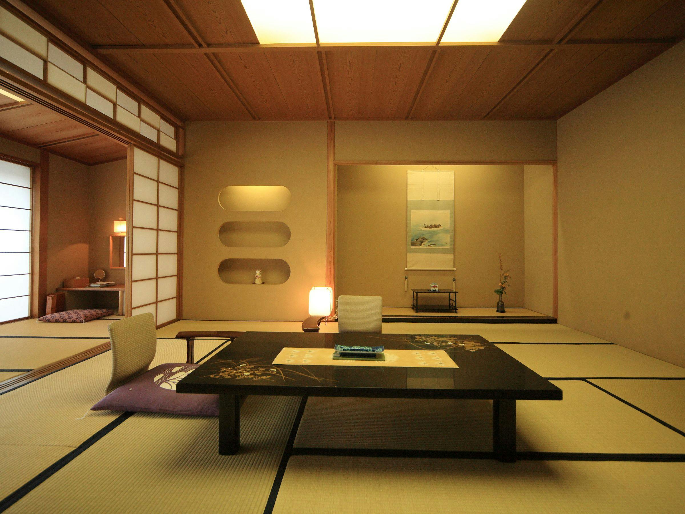 大正屋で最高峰の客室の一つ。広々としたお部屋で特別なひととき本間10畳に次の間8畳の庭園付特別室。次の間は茶室としてご利用いただけます。