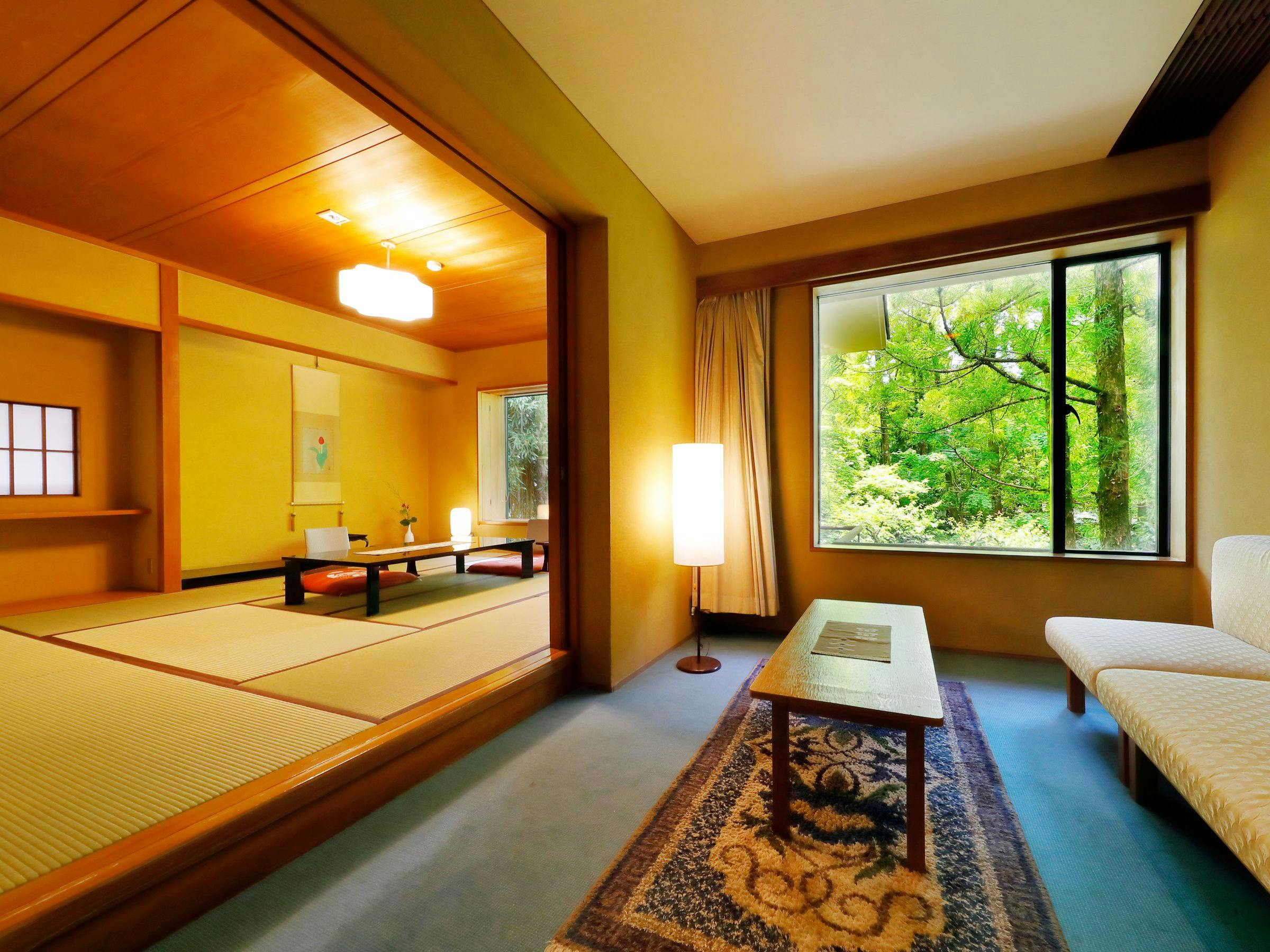 大正屋の想いをを理想を形にした最高峰客室。山間の別荘の如く10畳和室と8畳の茶室を配し、街中にいながら山間の自然の景色と雰囲気をよびこむ1戸建ての特別室。檜の内湯では源泉掛け流しをご堪能いただけます。大正屋が誇る最高峰の客室てごゆっくりお過ごし下さい。