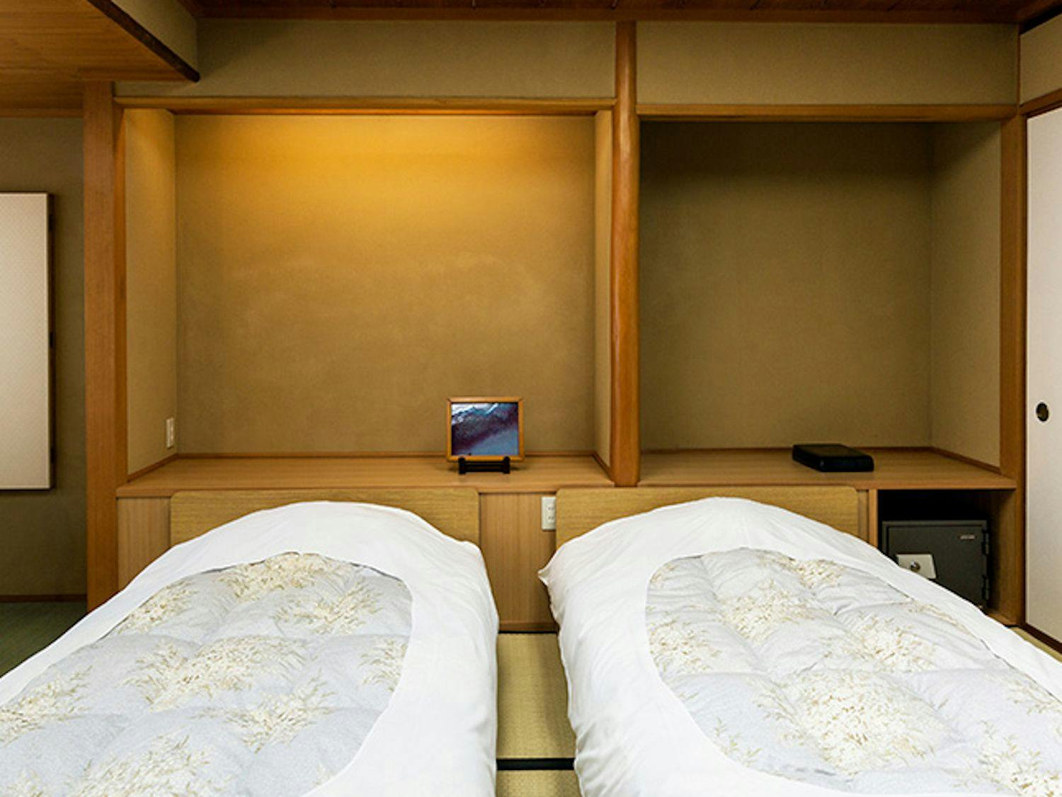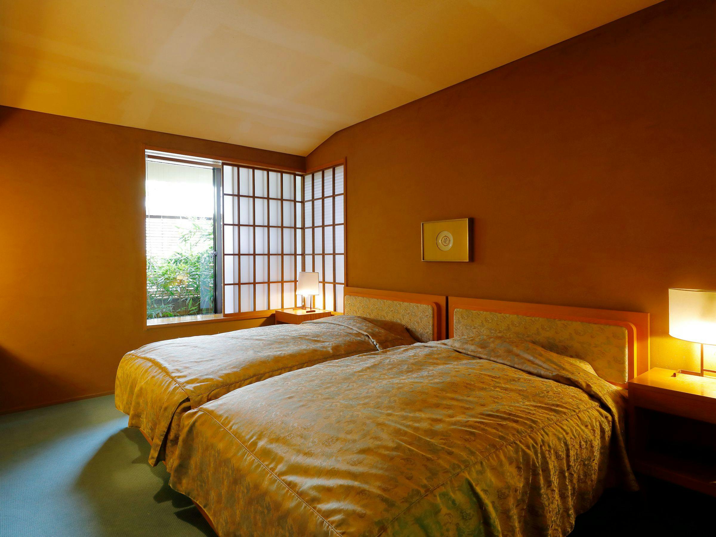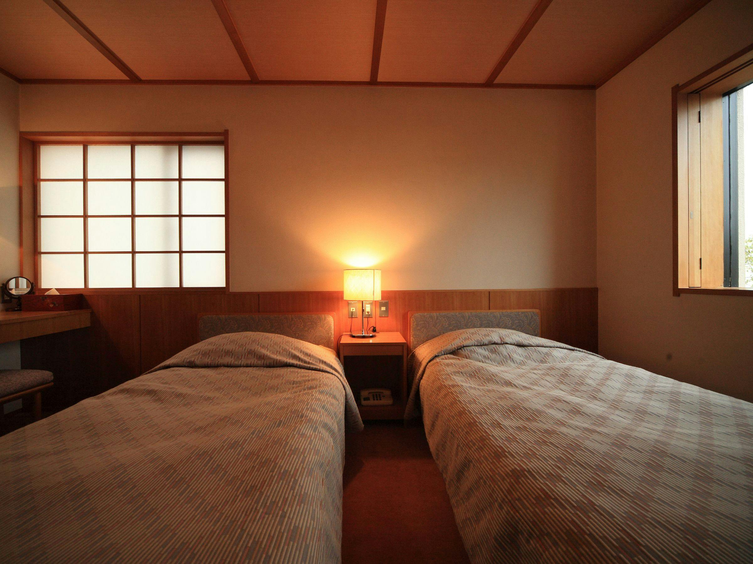 和室にツインのベッドルームを設置した客室です。和の雰囲気を楽しみながらベッドでお休みいただけます。