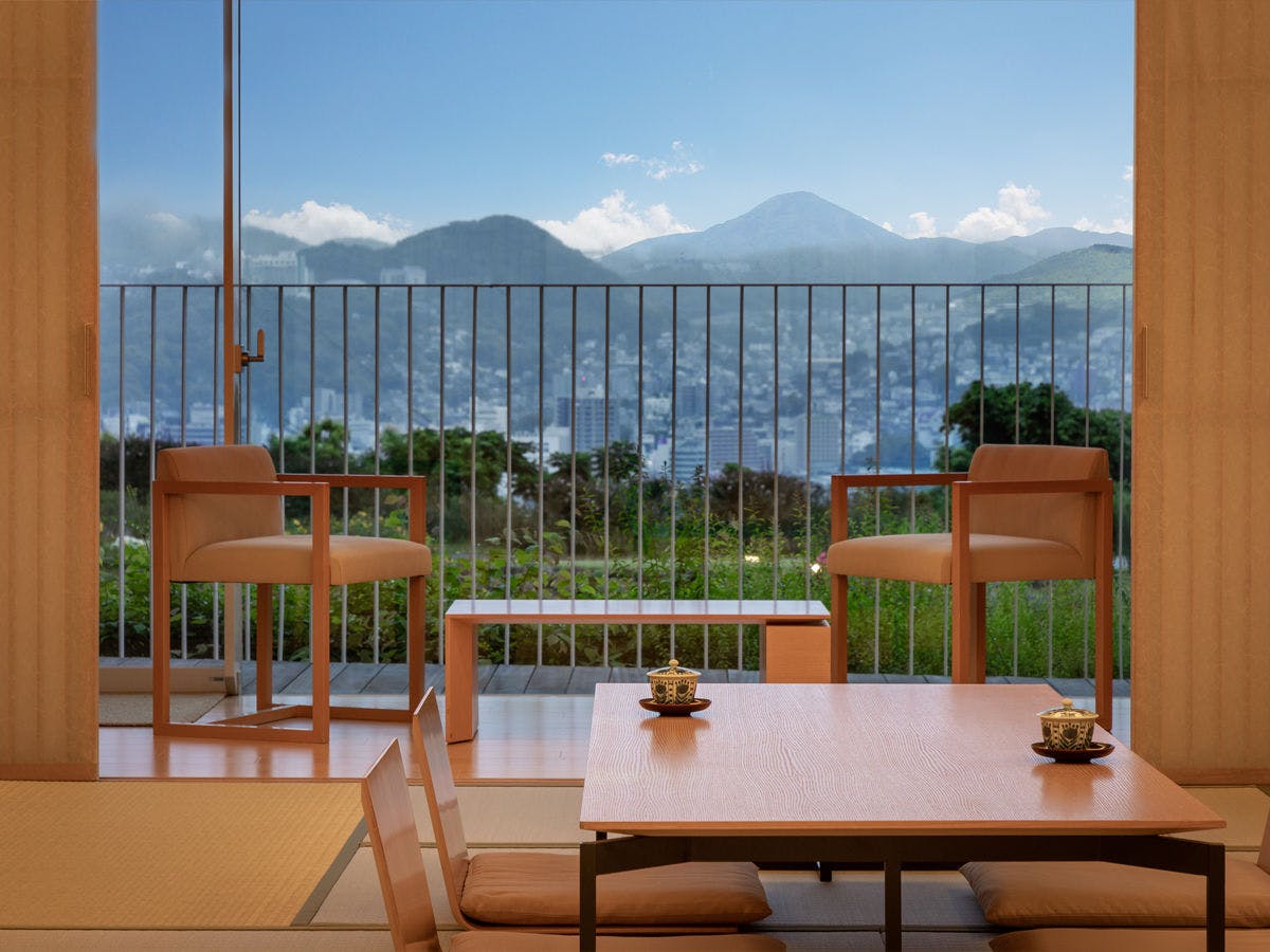 ホテルの客室は全室オーシャンビュー、世界新三大夜景にも選出された長崎の夜景が眼下に広がります。長崎駅から車で10分、稲佐山の中腹に位置するロケーションで、非日常感あふれるリゾート時間をご堪能できます。