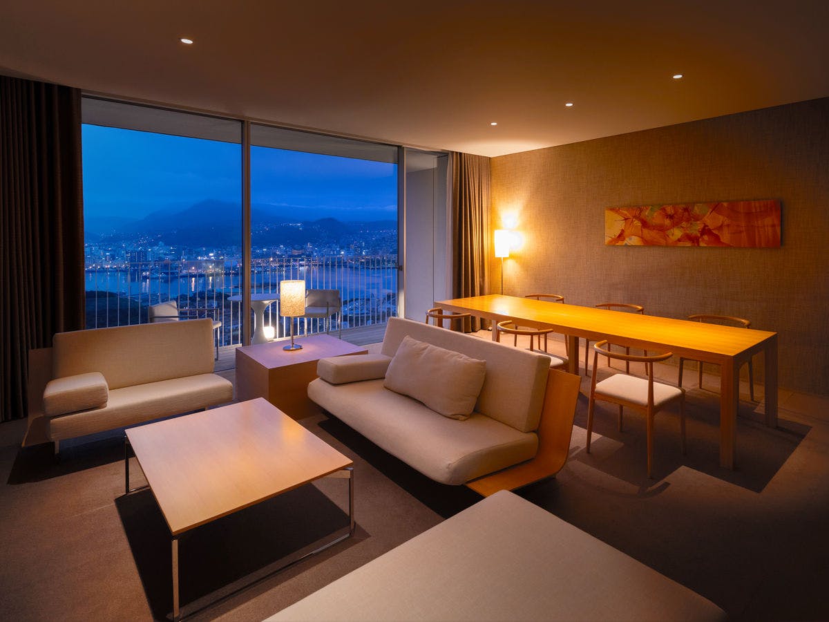 「世界のVIPをお迎えする」をコンセプトに設けられた、こだわりの最上級スイートルーム。最上階から港を一望する景観は、言葉を失う絶景。
