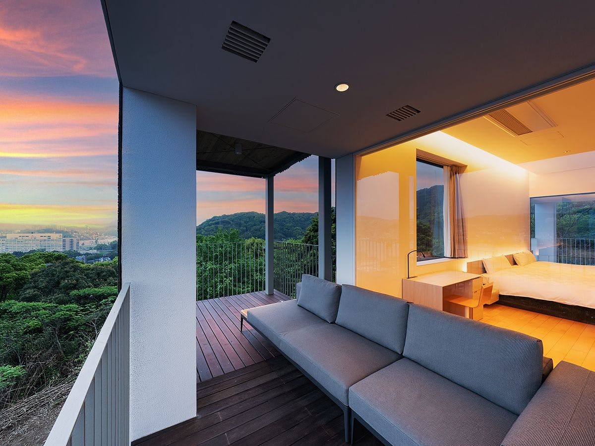 客室専用テラス/ビューバス/レインシャワー/洗面台2台/ドライヤー/温水洗浄機付トイレ/大型液晶TV/ブルーレイDVDプレーヤー/Bluetooth 対応サウンドシステム/空気清浄機/加湿器/ミニバー/ポット/インターネット通信無料(有線・Wi-Fi)