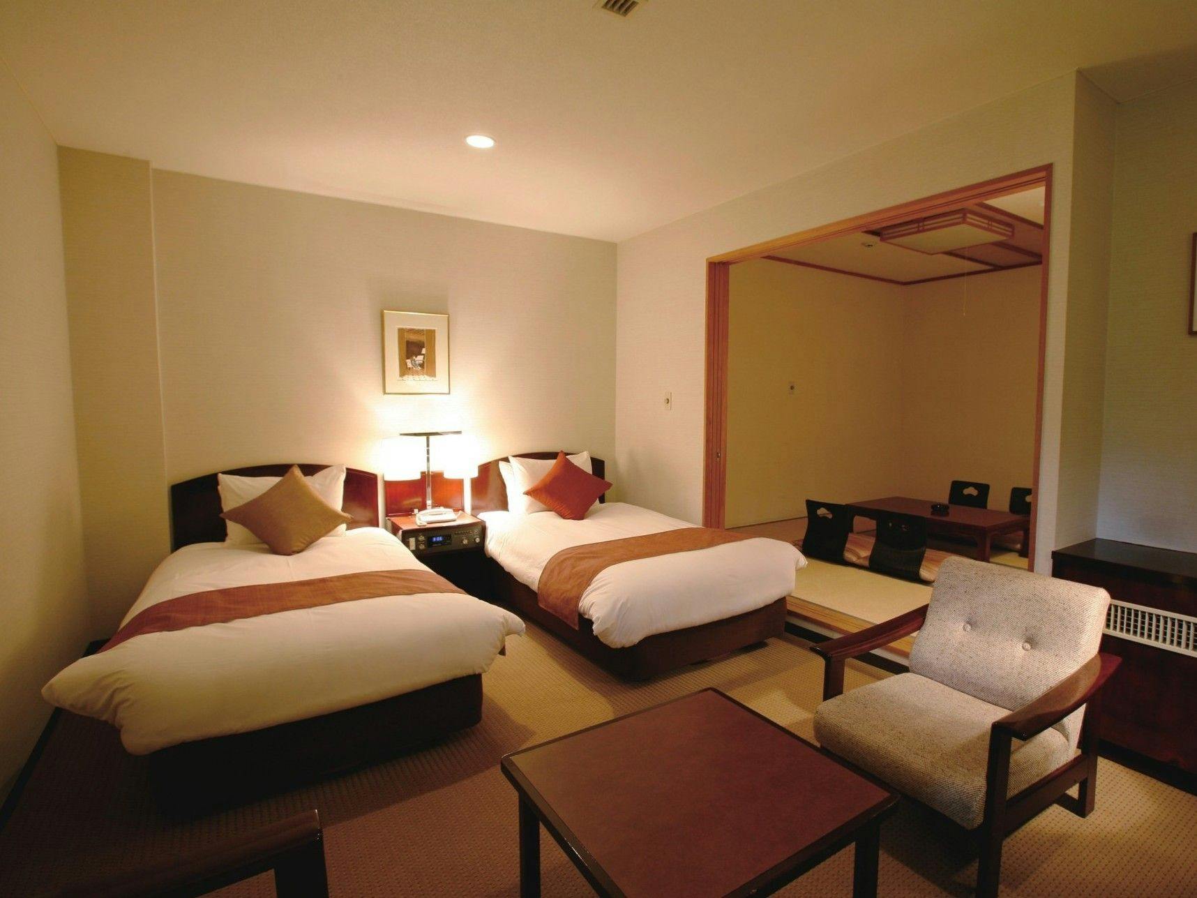 【全室禁煙】42平米の広い和室はご家族・グループにおすすめのお部屋です。12畳と6畳の二間続きの為、当館で一番広いお部屋となります。洗面所とユニットバスがセパレートタイプ。インターネット無線LAN接続が可能(無料)※一部電波の弱いお部屋もございます。【アメニティー】女性にご好評いただいているTheDaySpaのアメニティをご用意。