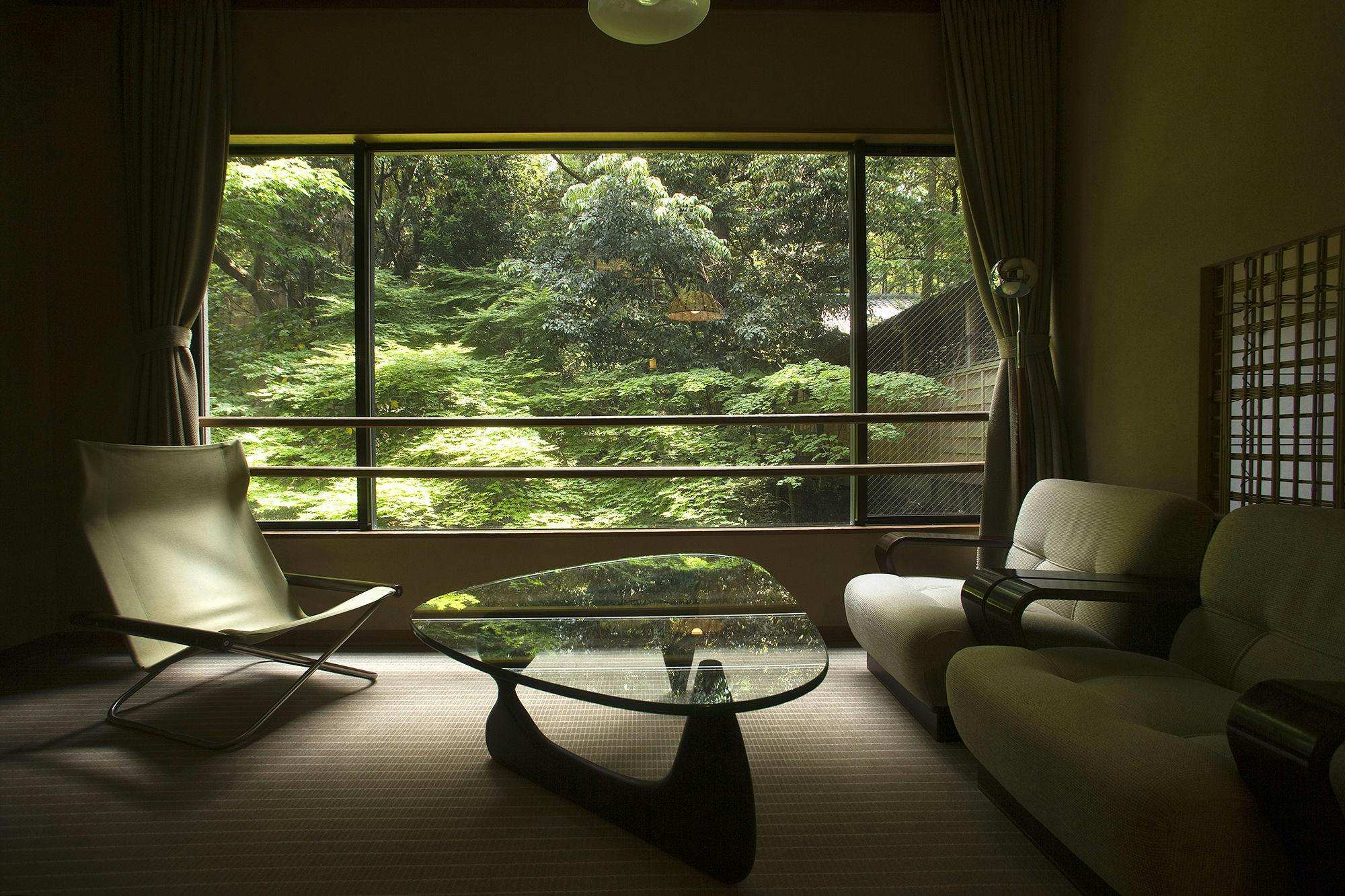 寛永年間に作られた山庭は、北前船により全国から集められた自然石と銘木で築わした「山畔池泉式」で、今もその面影を残します。新緑、紅葉、雪景色と四季折々の風情とともに閑静なひとときにてお寛ぎいただけます。