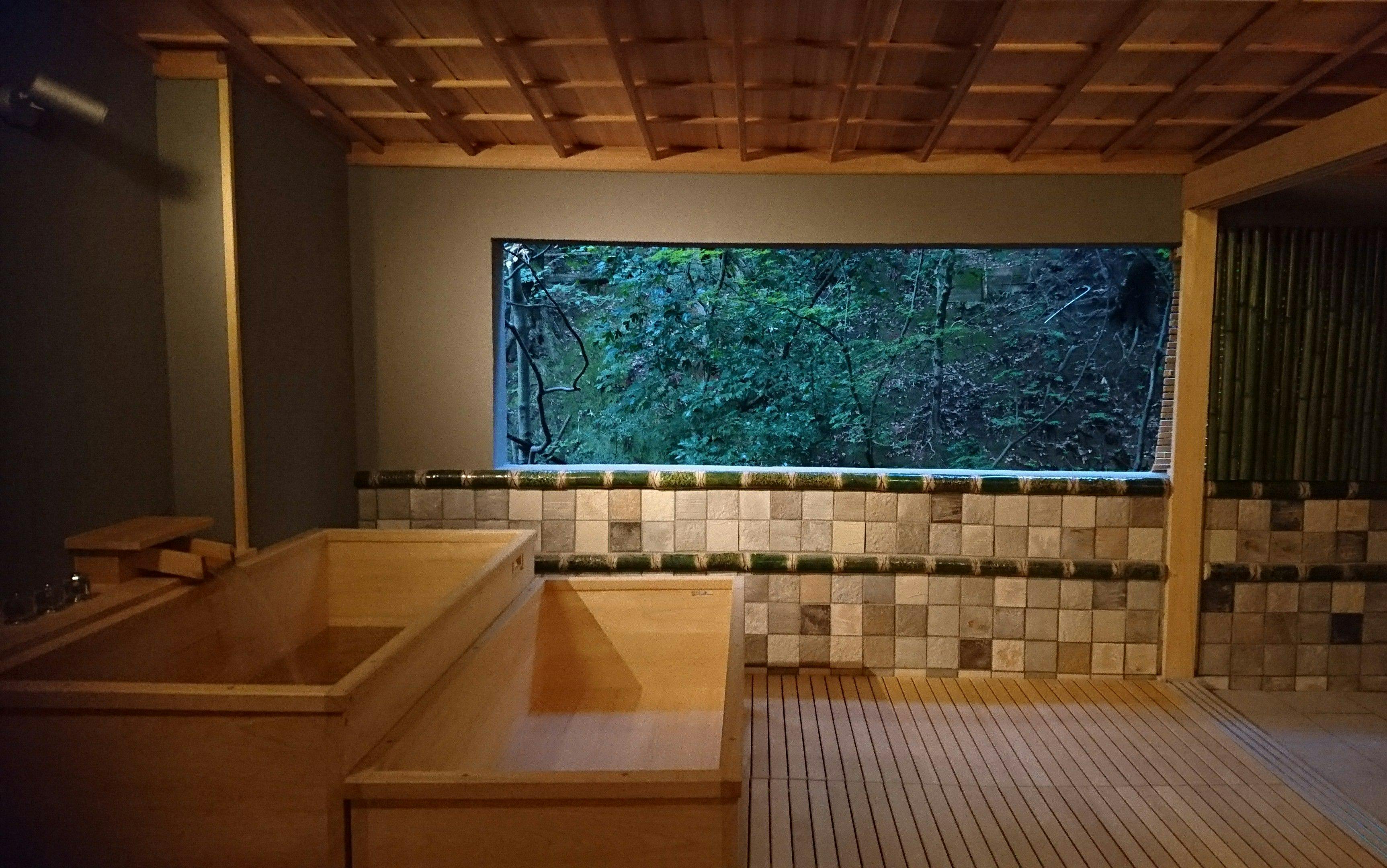 寝室の二間続き、また浴室は源泉かけ流しの半露天風呂付と贅沢なお部屋になりました。