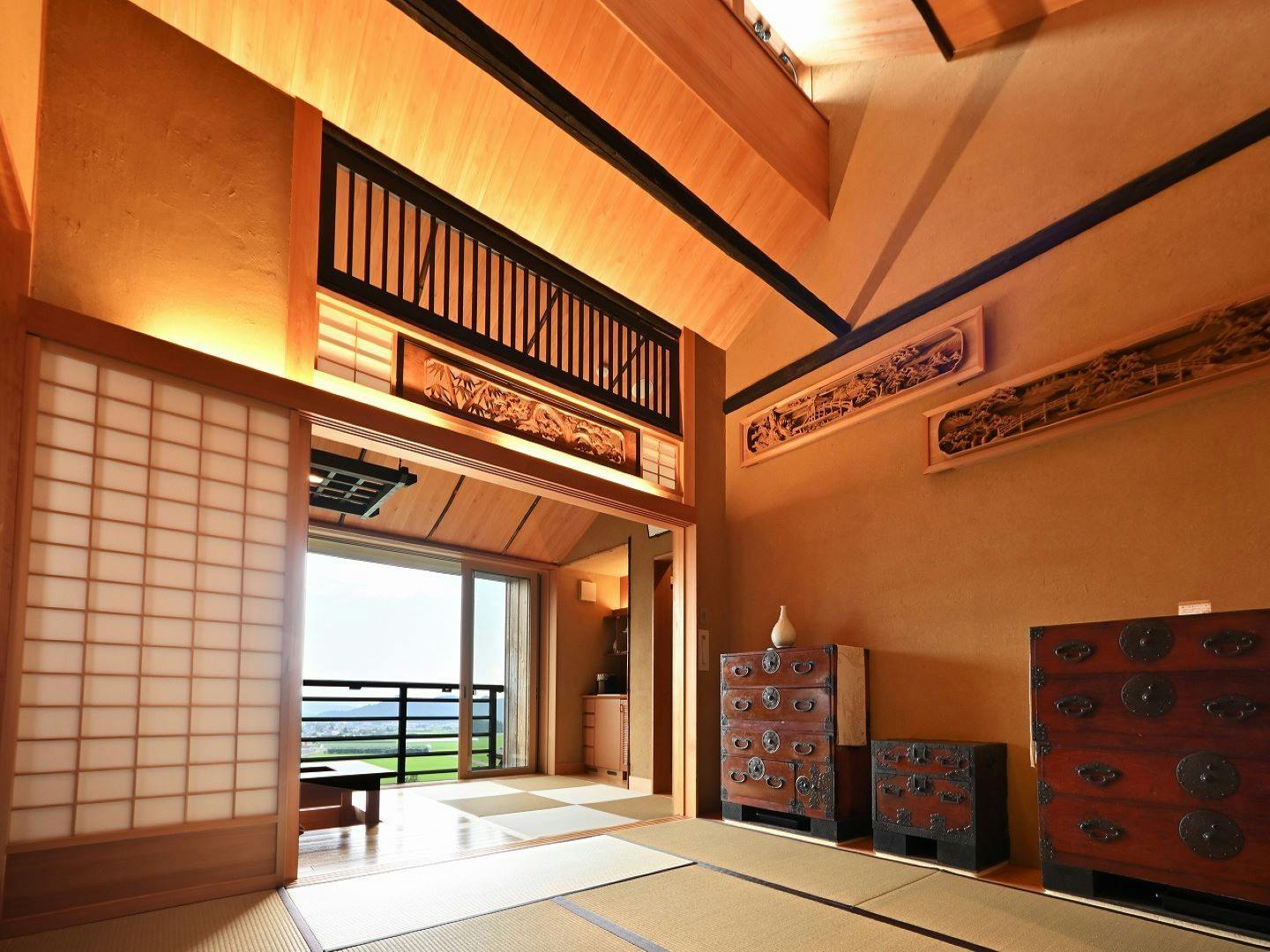 山の中腹に建てられ、日本の原風景を想起させる川場村の里山の景観をお楽しみいただけます。