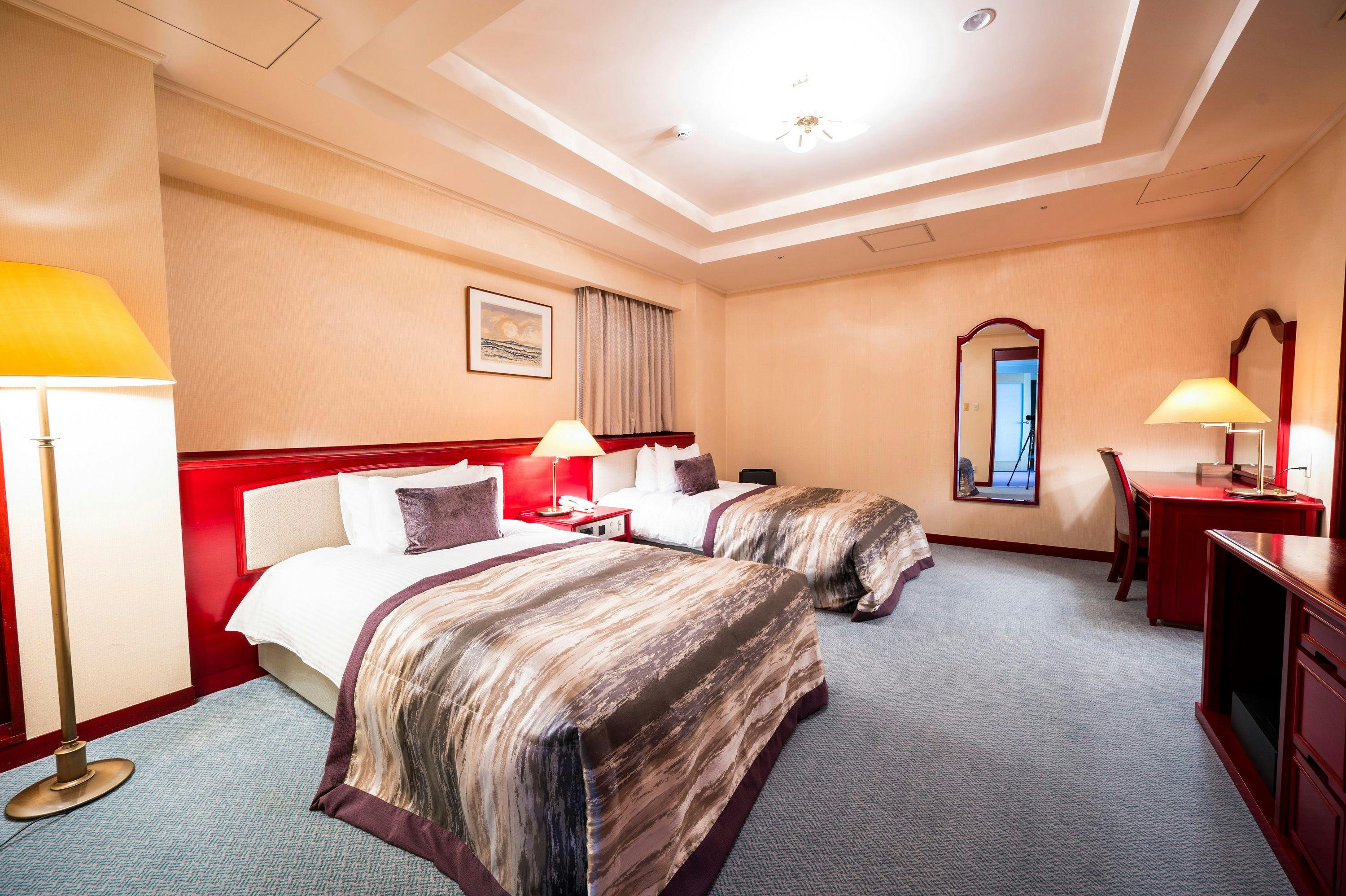 2023年春リニューアル。高台の高層階から望む日本海の絶景と、シモンズのベッドマットレスを兼ね備えたお部屋です。お部屋の冷蔵庫にはフリードリンク(アルコール・ソフトドリンク)付き。客室テレビは大きな55インチです。