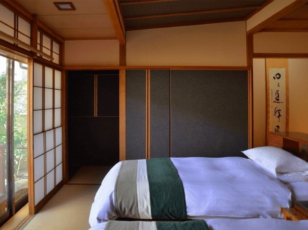 一階中庭に面した、リクライニング式ツインベッドの和室です。