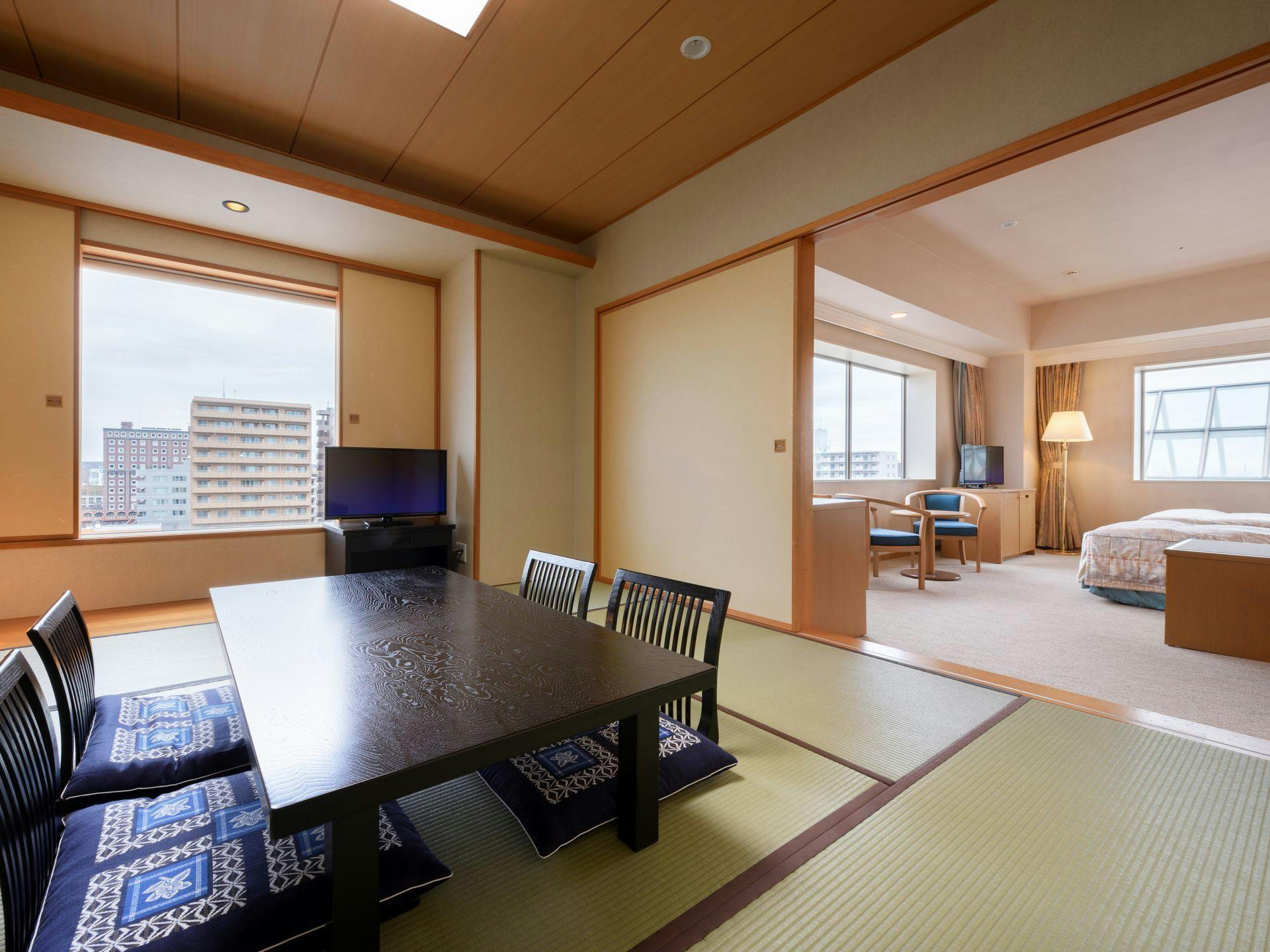 デラックスコーナーツインに和室をプラスした最大5名様まで宿泊可能なお部屋。ご家族やお仲間同士でのご利用に最適です。