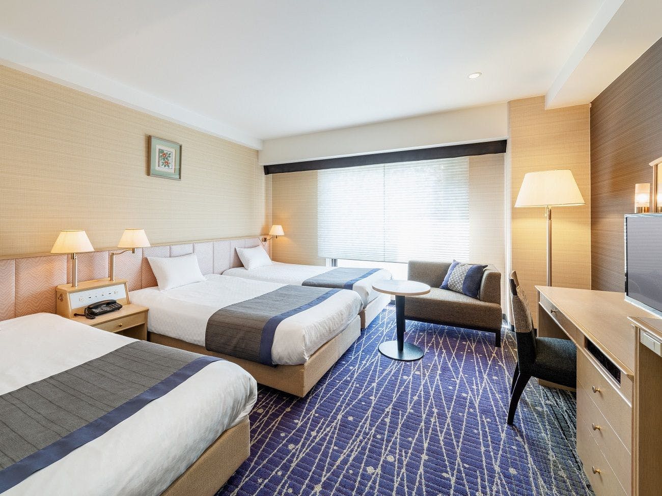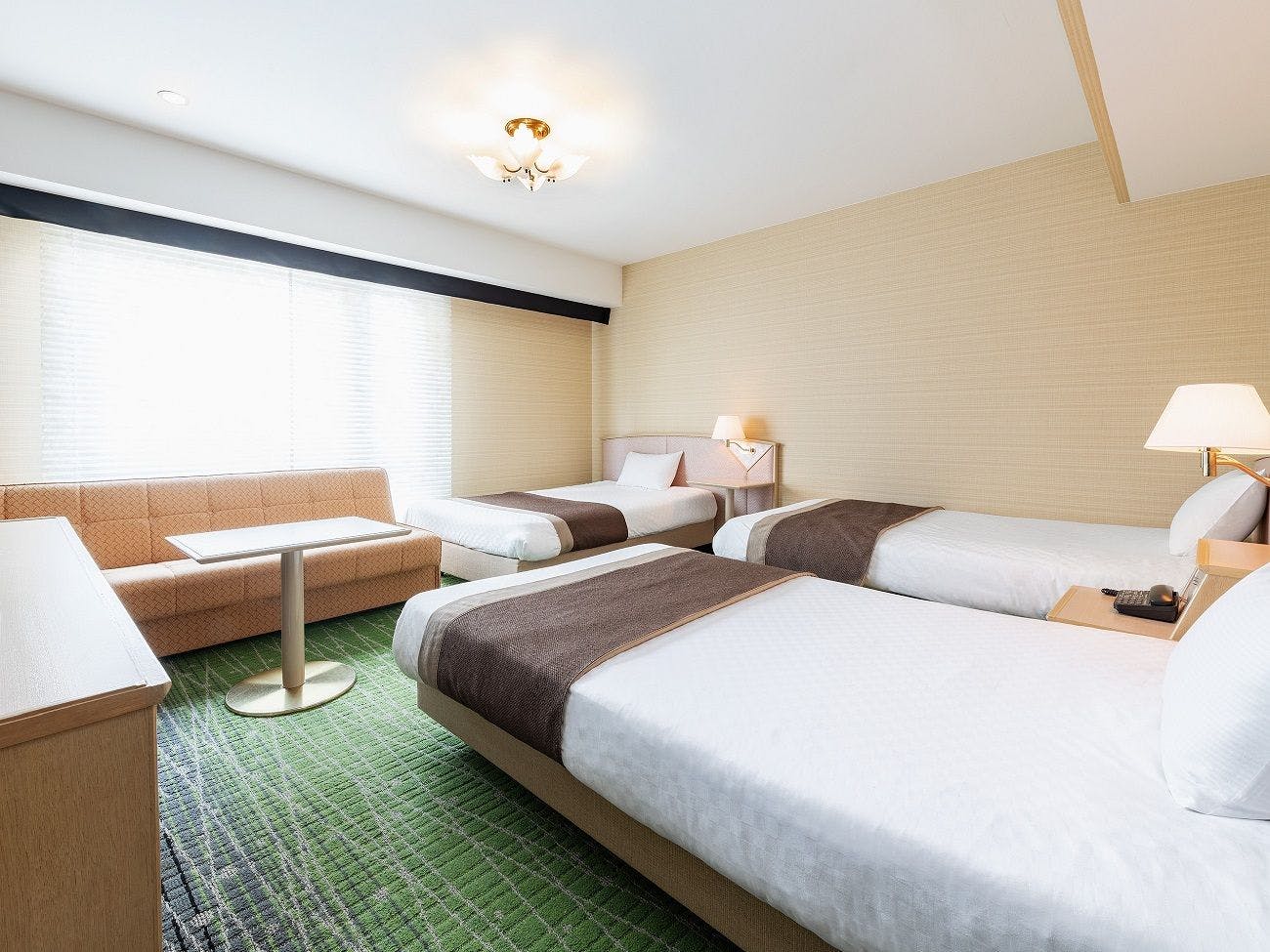 スタンダードタイプのトリプルルームです。【広さ】26.7平米【ベッドサイズ】幅113cm×長さ195cm 3台【バスタイプ】ユニットバス【客室設備】Wi-Fi/空気清浄機/VOD/シャツガウン/ミネラルウォーター