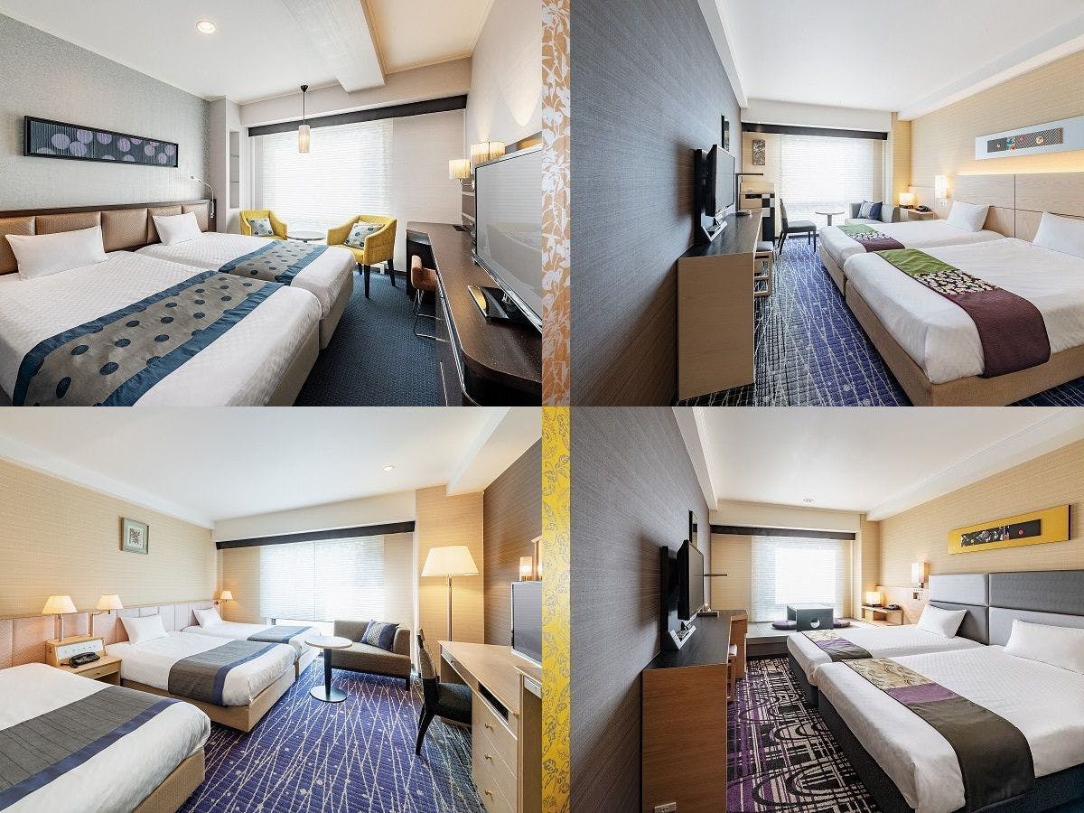 モデレートツイン(22.5平米)2室を隣同士でご用意いたします。※お部屋の中を行き来出来る、コネクトルームではございません。<ベッドサイズ>113cm×195cm 4台98cm×195cm 1台Wi-Fi、高速LAN回線、空気清浄機完備ユニットバス
